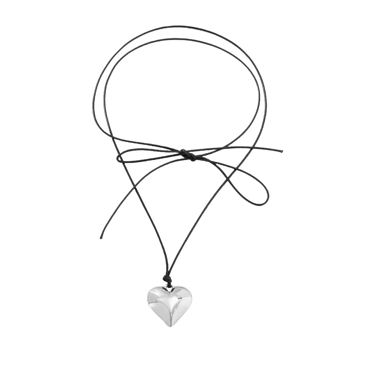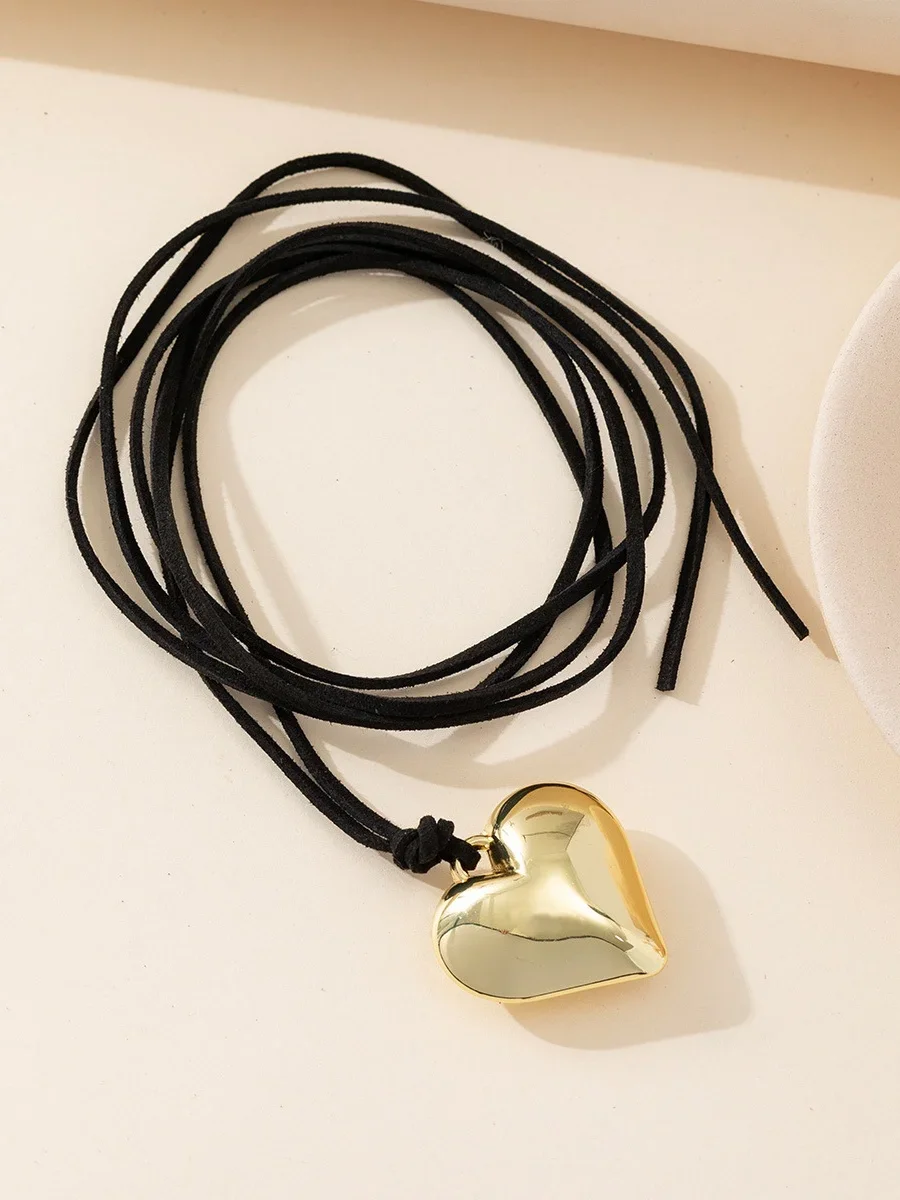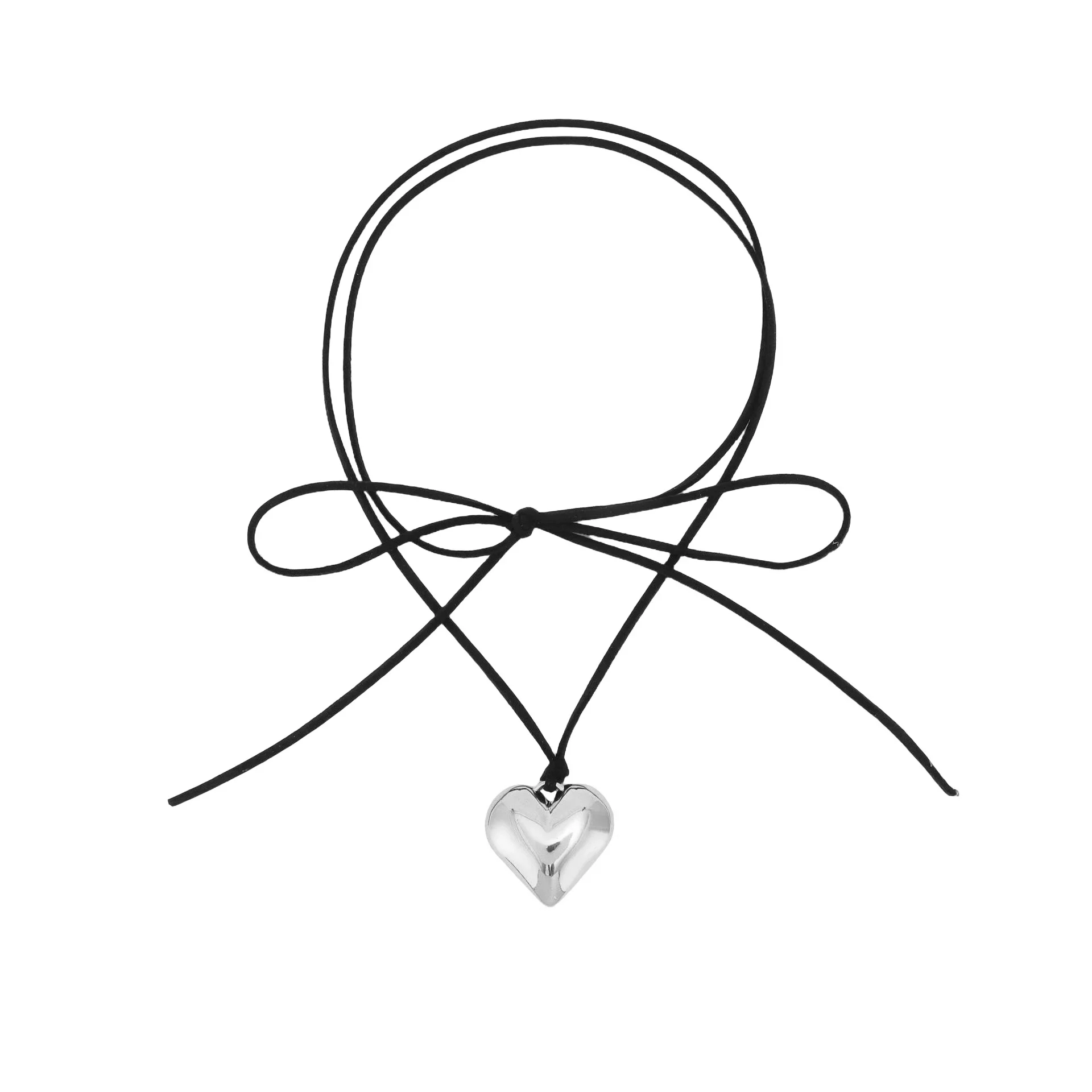 Metal Color: Steel color - Punk Black Velvet Big Heart Pendant Choker Necklace for Women PU Leather Weave Knotted Bowknot Adjustable Chain New Jewelry