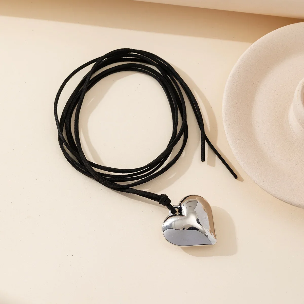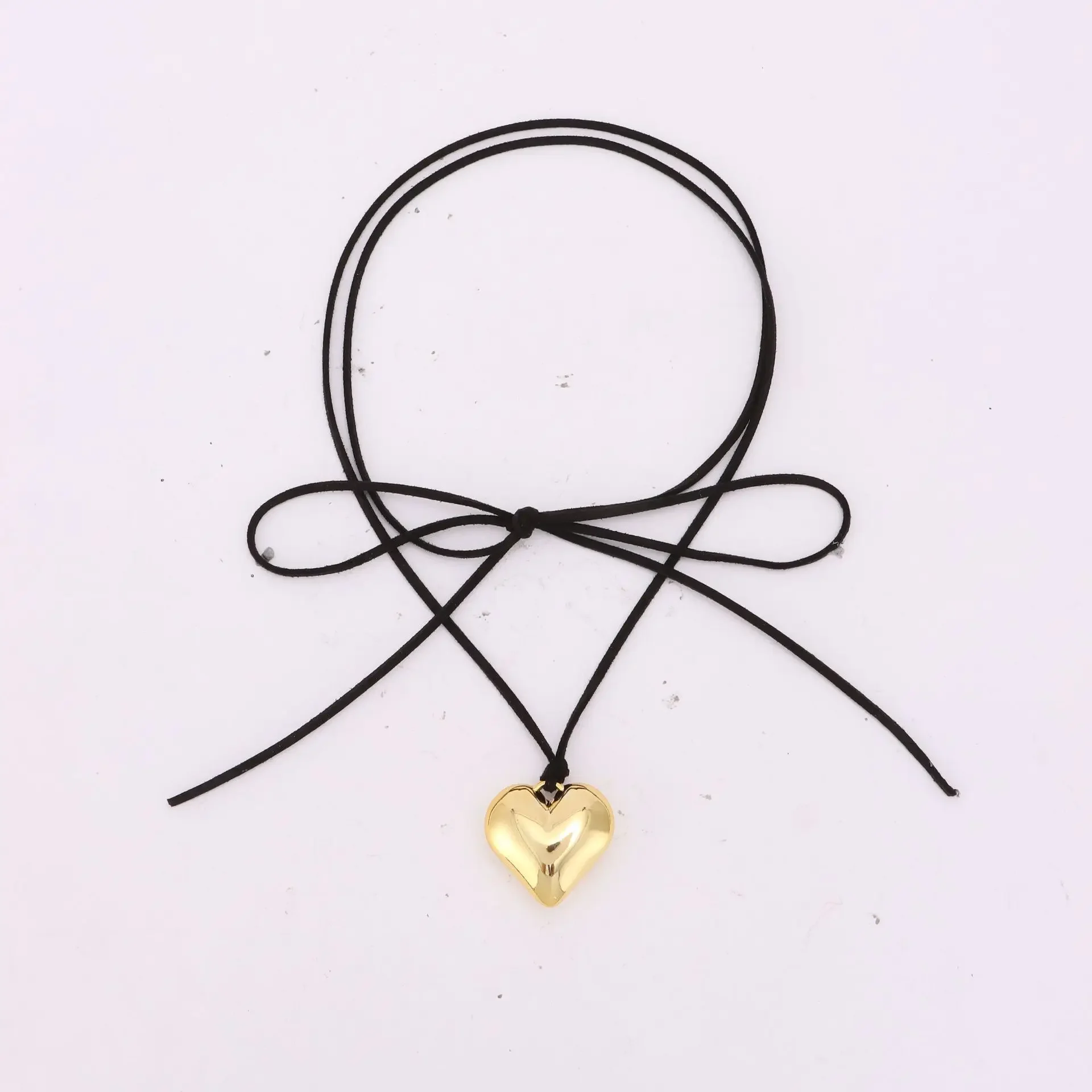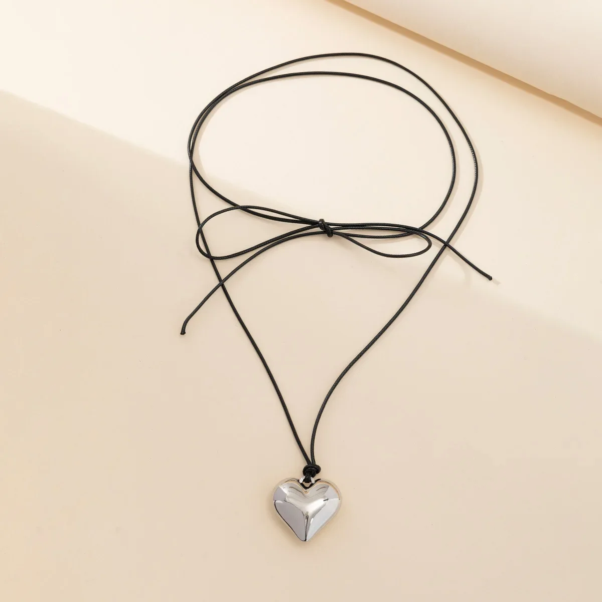 Metal Color: Steel color - Punk Black Velvet Big Heart Pendant Choker Necklace for Women PU Leather Weave Knotted Bowknot Adjustable Chain New Jewelry