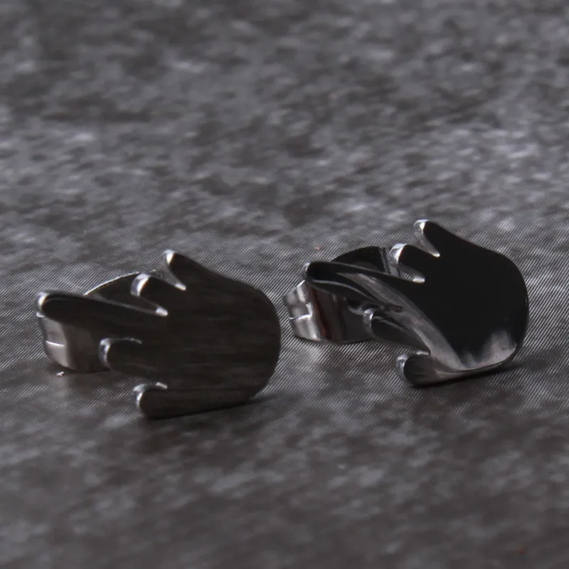 - Design: Middle finger gesture earrings with intricate details and polished finishes