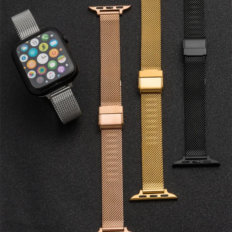apple steel mesh belt rose gold, 14 interface small waist apple steel mesh belt local gold