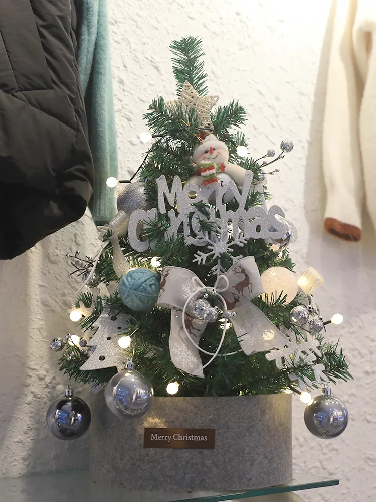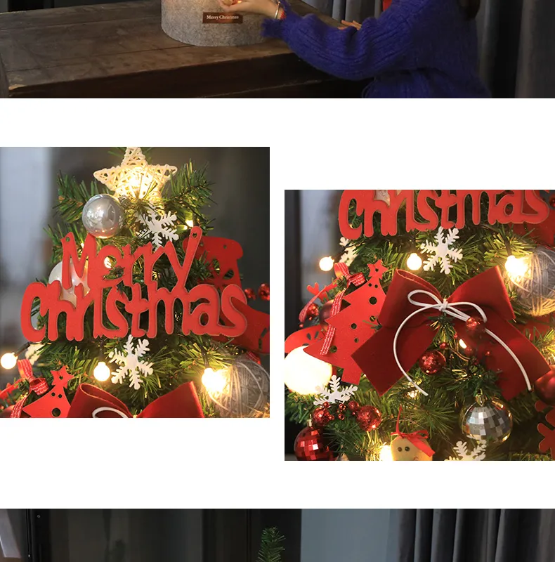 Total: 20 kinds of accessories 35 pendants + flashing light string + tree bottom