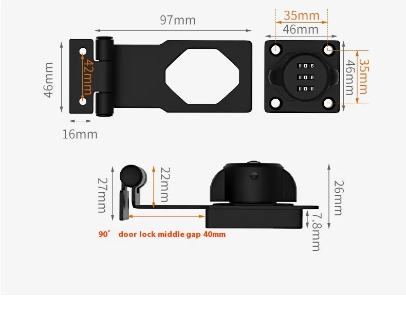 Specifications: 4.5-inch 90 ° password door lock bright silver [screw installation], 4.5-inch 90 ° password door lock matte black [screw