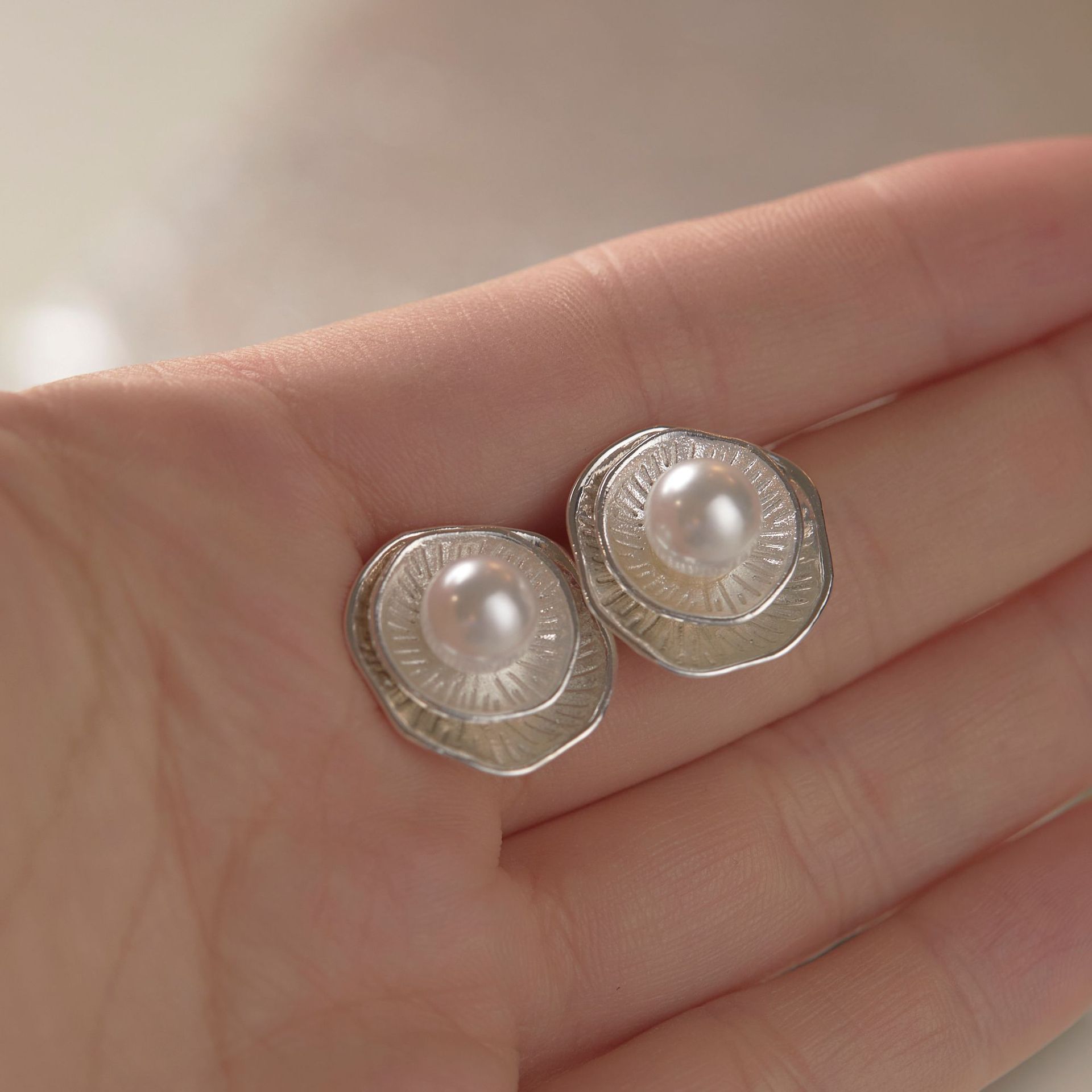 Crafted with meticulous attention to detail, these stud earrings are designed for the modern woman who values both style and comfort. The frosted silver setting highlights the natural beauty of the pearl, while the minimalist design ensures that these earrings can be worn with any outfit, from casual daywear to elegant evening attire.