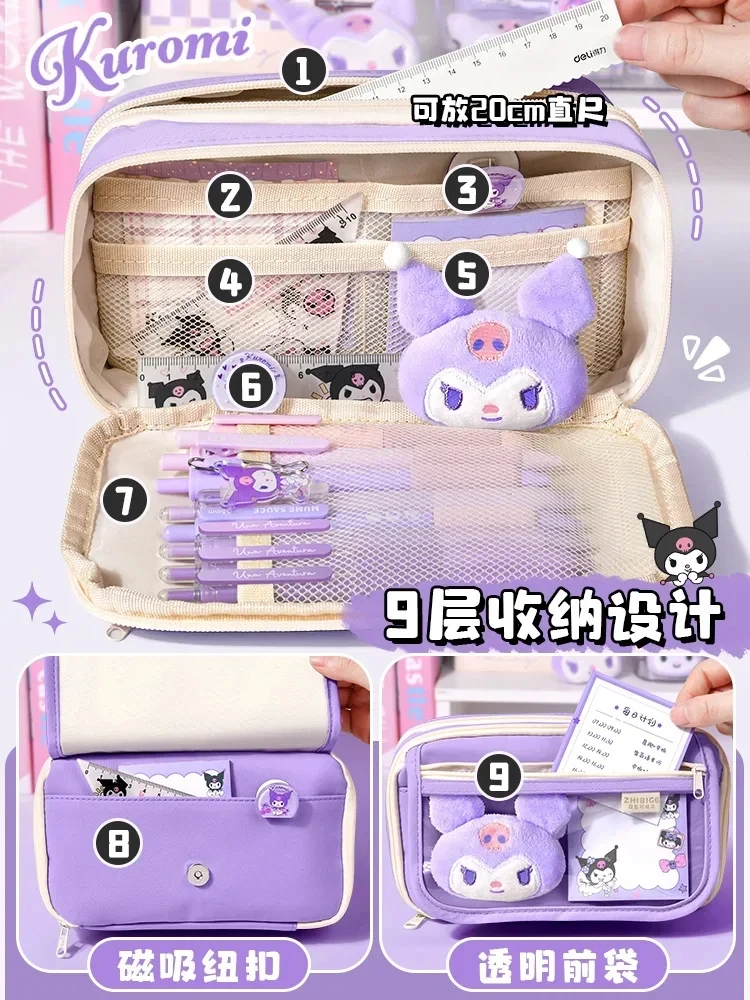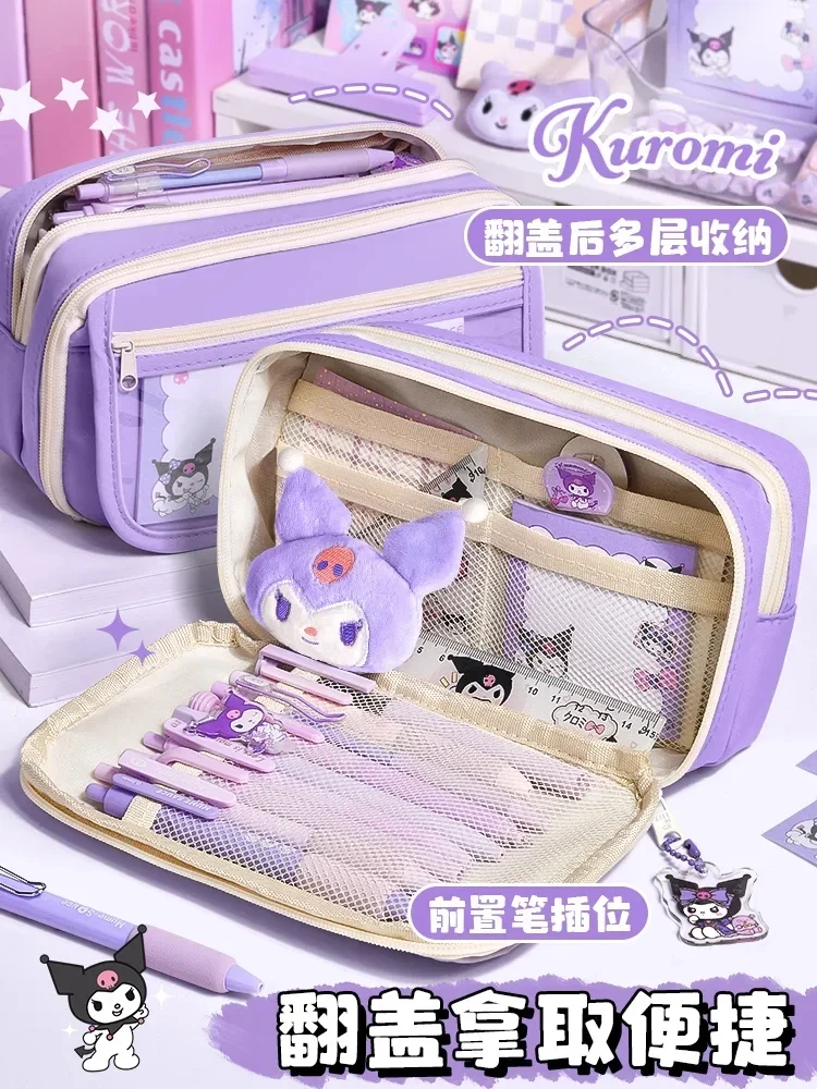 MINISO Cute Kuromi Large Capacity Pencil Case Pretty Zipper Pen Pouch for Girls, Complete Set of School Supplies