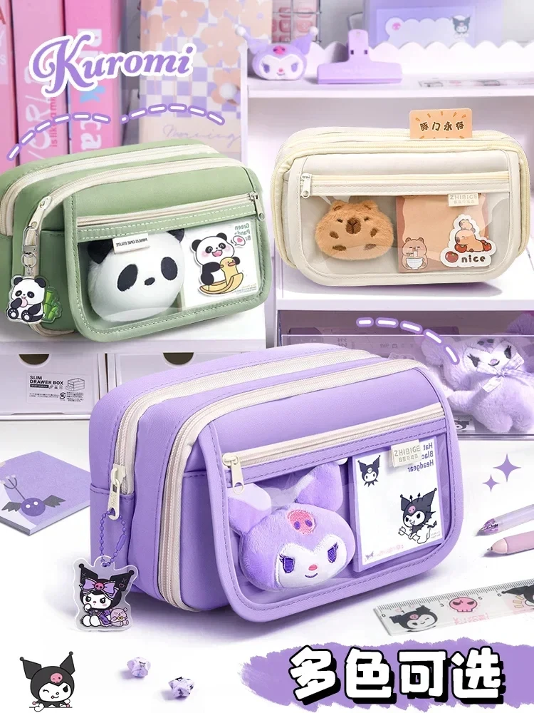 MINISO Cute Kuromi Large Capacity Pencil Case Pretty Zipper Pen Pouch for Girls, Complete Set of School Supplies
