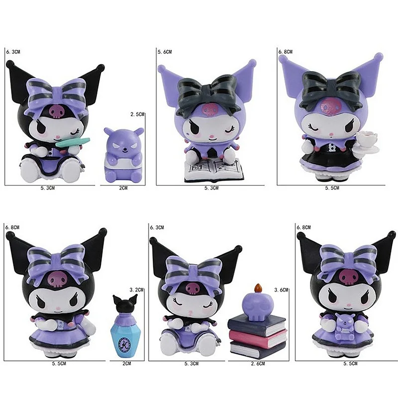 - Versatile Use: Besides being a fun collectible, these figures make delightful desk decorations, adding a touch of anime charm to any workspace or personal area. They also serve as unique and thoughtful gifts for fans of the Kuromi character.