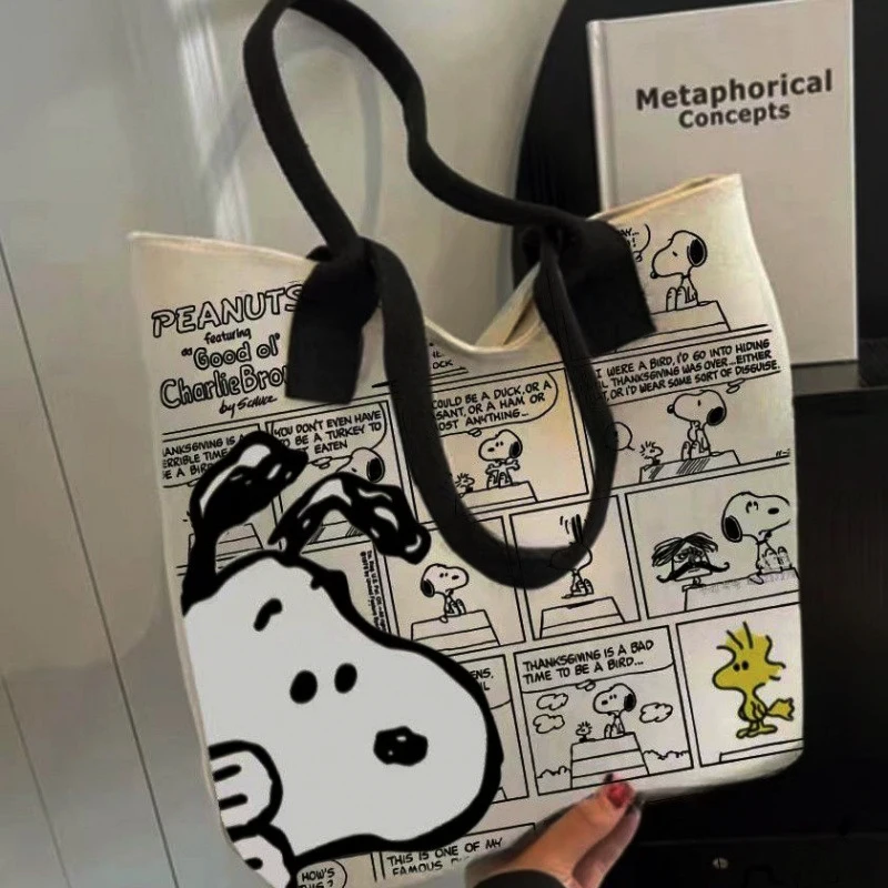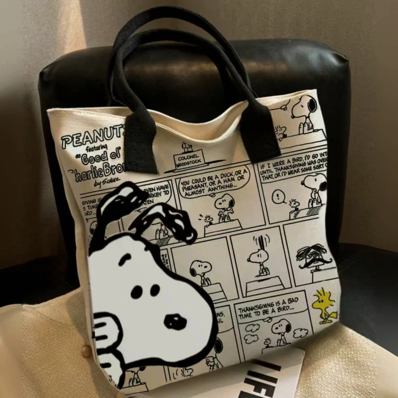 MINISO Snoopy Cartoon Printed Canvas Bag – Large Capacity Handbag, Casual Versatile Tote Bag, Shopping Bag, Shoulder Bag