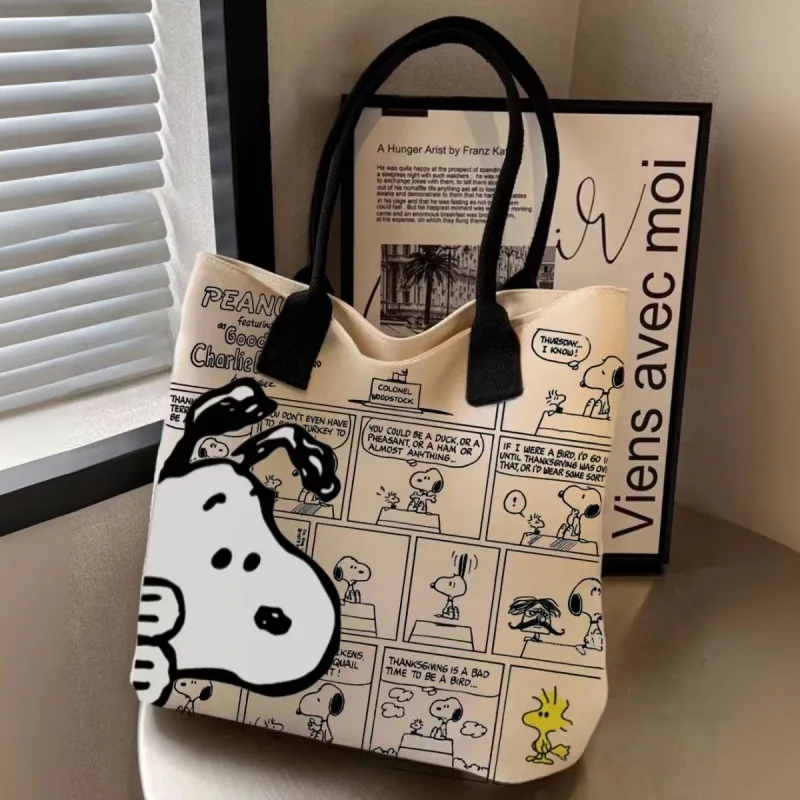 MINISO Snoopy Cartoon Printed Canvas Bag Large Capacity Handbag, Casual Versatile Tote Bag, Shopping Bag, Shoulder Bag