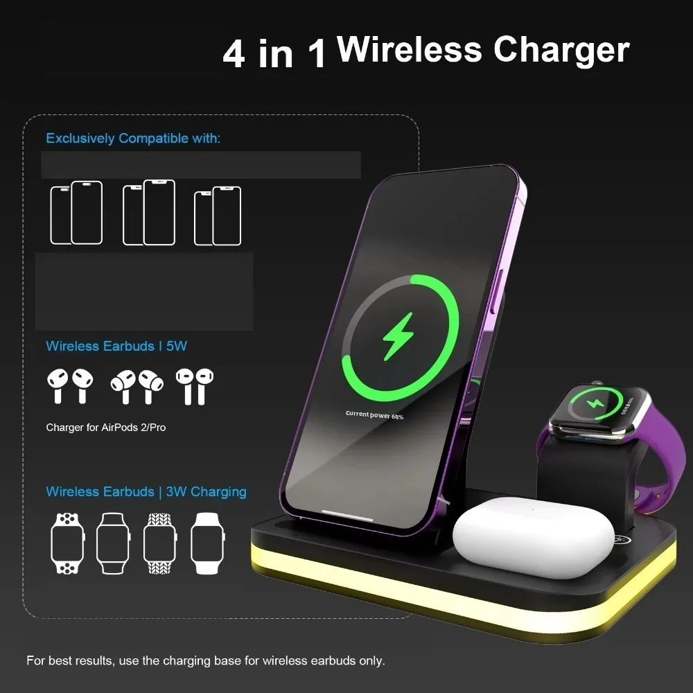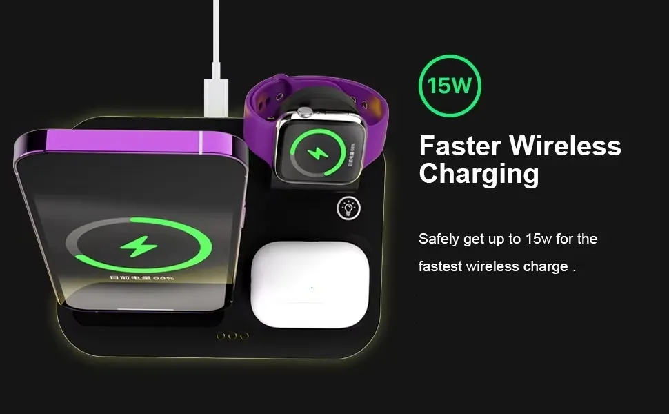 1. 4-in-1 Wireless Charger: Apple Phone (Dual Coil), Apple Headphones (Single Coil), Apple Watch (Magnetic Coil)