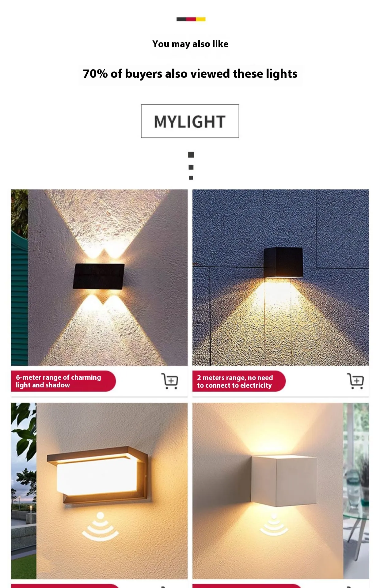 These solar wall lights are equipped with motion sensors, which detect movement and automatically turn the light on. They are perfect for use in areas where you want to improve security or provide lighting only when needed. For example, motion-sensing lights are great for driveways, entrances, or gates, ensuring that the area is illuminated as soon as someone approaches.