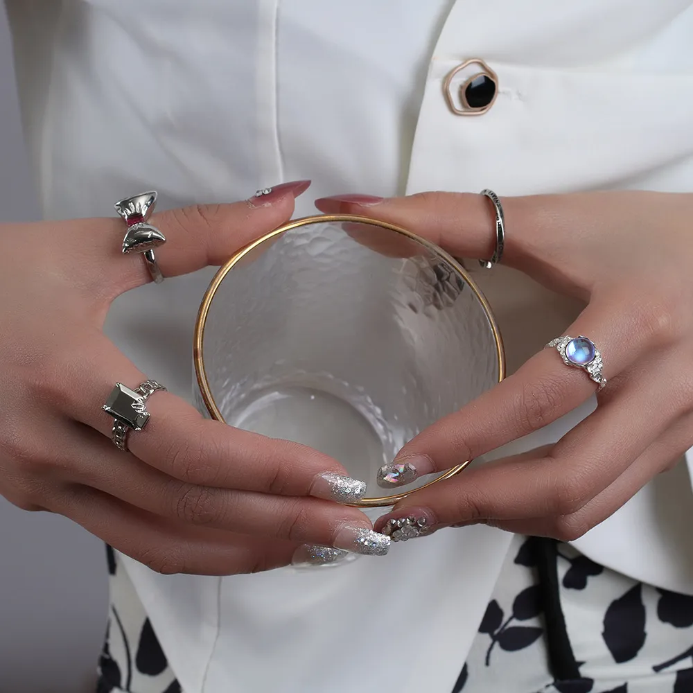 Introducing the Moonlight Stone Small Group Design Ins Cool Wind High-grade Round Ring, a striking piece of high-end jewelry that combines modern style, timeless elegance, and the mystical allure of moonlight stones. This round ring features a unique small group design that enhances its sophisticated appeal, making it the perfect accessory for those who appreciate luxury, simplicity, and fashion-forward designs.