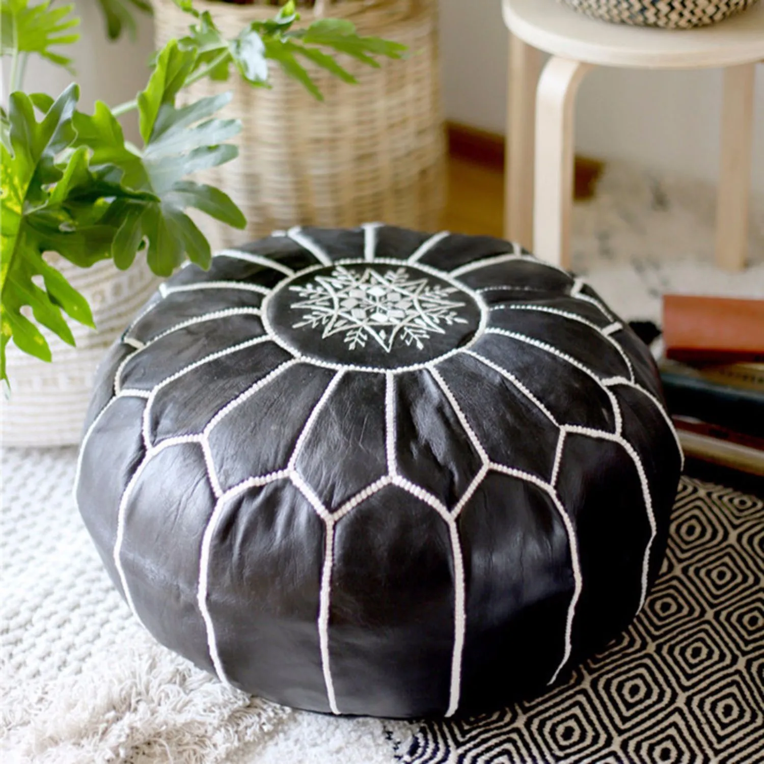 Moroccan Leather Pier Hand-embroidered Sheepskin Futon