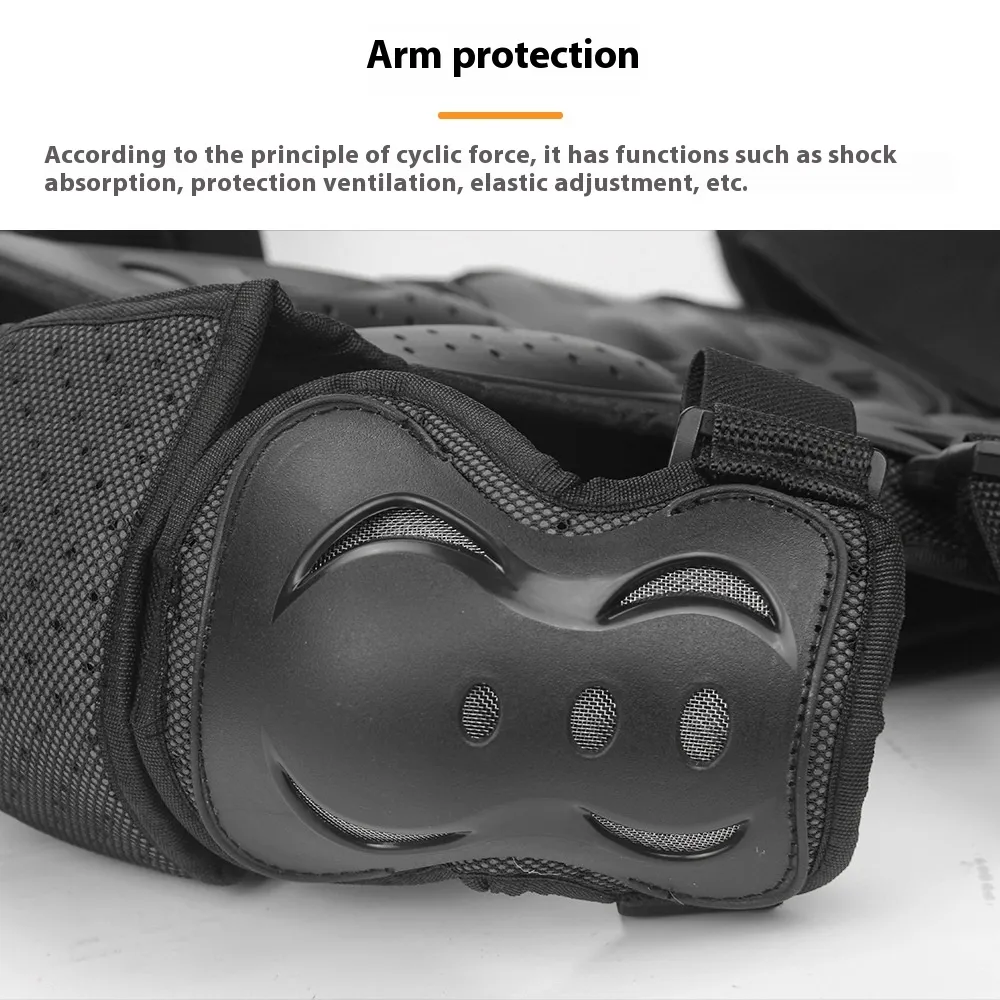 Complete Five-Piece Set: The set includes a helmet, knee pads, elbow pads, wrist guards, and a body armor vest, ensuring