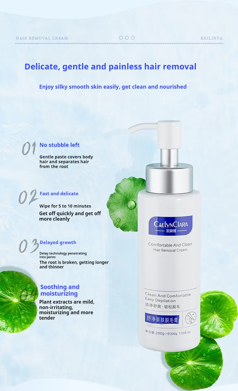 The Mousse Mild Painless Skin Care Depilatory Cream is designed for sensitive skin, ensuring a smooth and pain-free hair