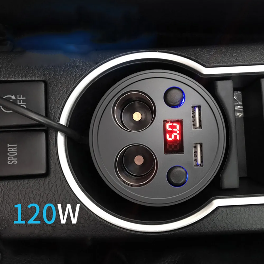 Multi-function Cigarette Lighter Digital Display Multi-mouth Cup Type Car Mobile Phone Car Charger