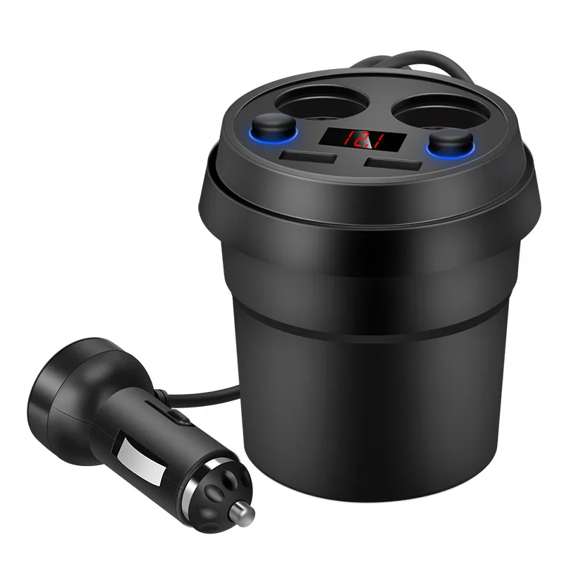 The Multi-function Cigarette Lighter Digital Display Multi-mouth Cup Type Car Mobile Phone Car Charger is a versatile and innovative accessory designed to enhance your driving experience by providing multiple charging ports, a digital display, and a convenient cup holder design. This all-in-one solution not only allows you to charge your mobile devices but also ensures that your car remains organized while on the go. With multiple USB ports, a digital voltage display, and a compact cup holder design, this charger offers practicality and style to keep your devices powered up during long drives or daily commutes.