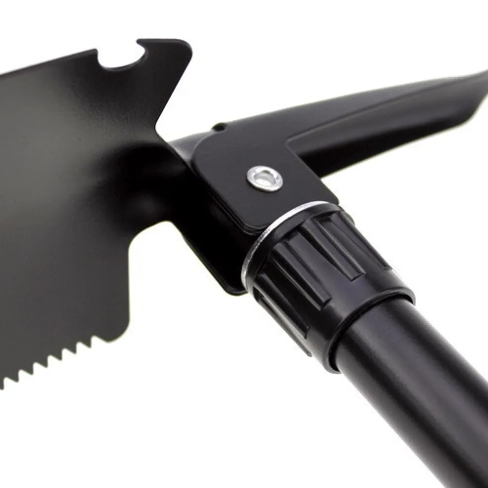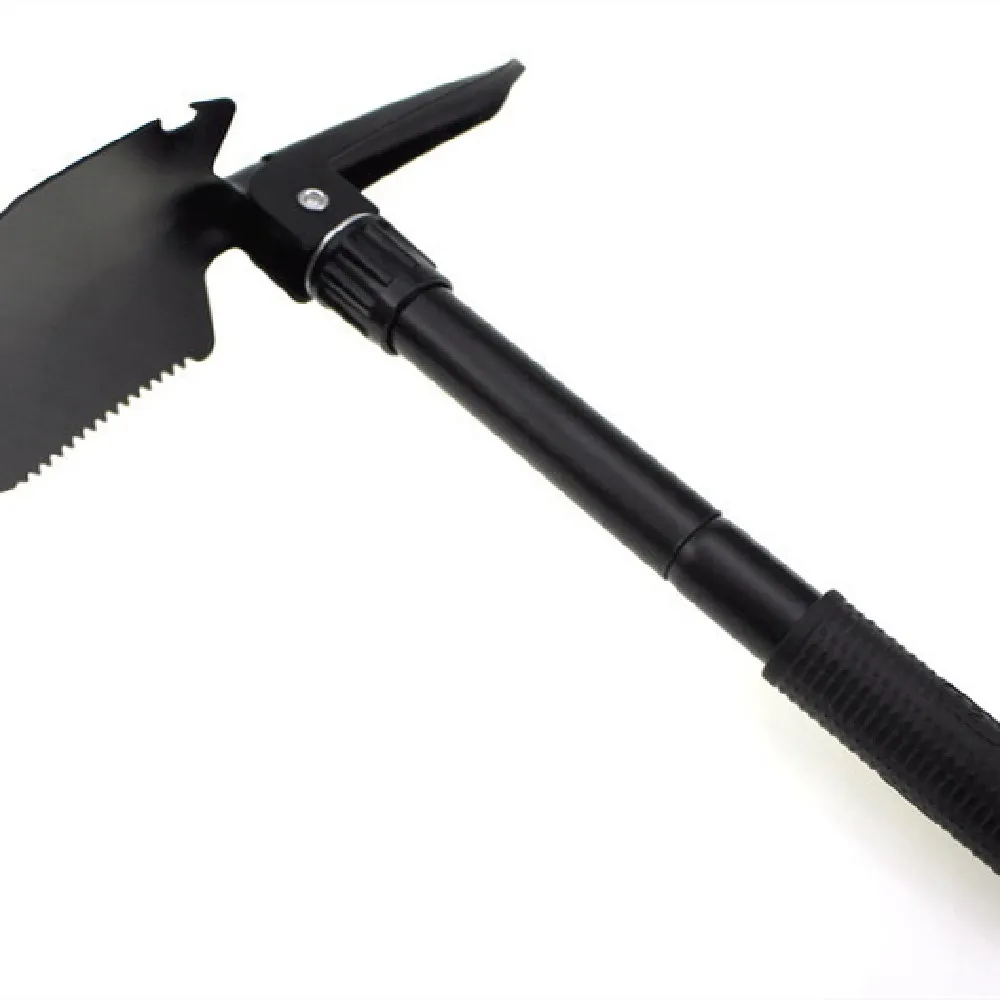 This shovel features a well-designed handle and a sharp, strong blade that can be used for digging, trenching, cutting, and more. The multi-functional design incorporates several features such as a pickaxe, bottle opener, and even a fire starter, making it an essential tool for survivalists, campers, hikers, or anyone who needs a reliable and durable outdoor tool.