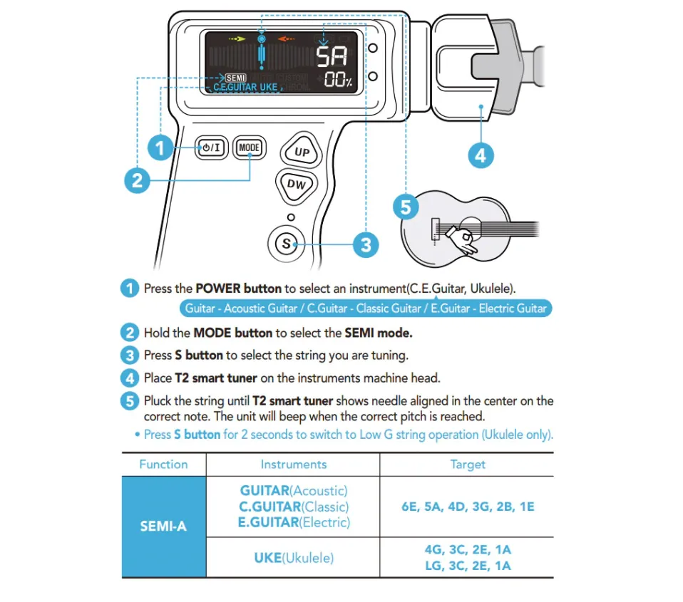 - High Sensitivity: Accurately detects pitch even at low volumes, ensuring fast and reliable tuning.