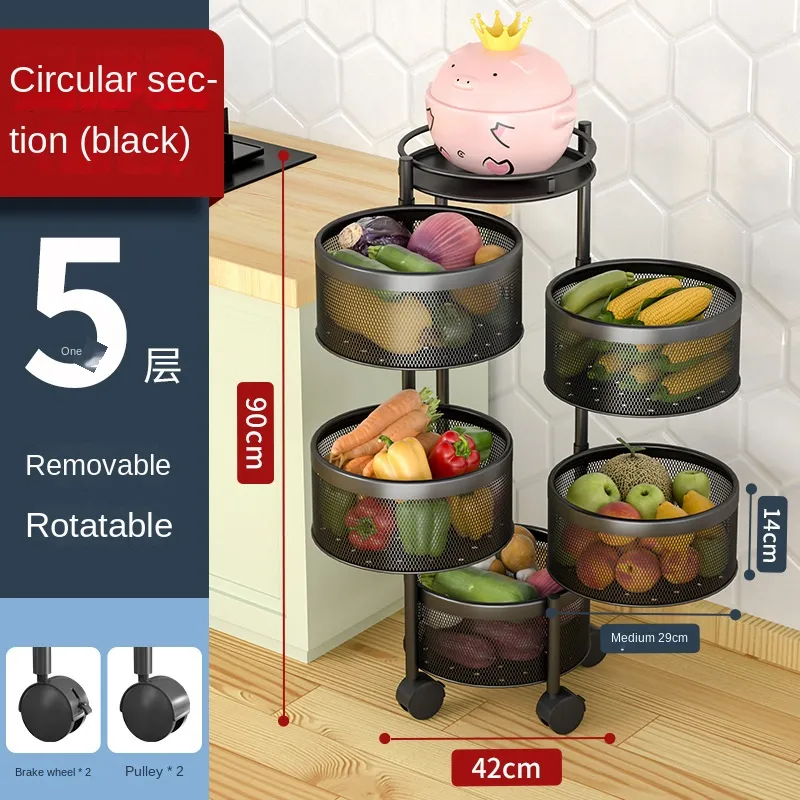 Multi-Layer Rotating Storage Rack For Kitchen With 5 Baskets