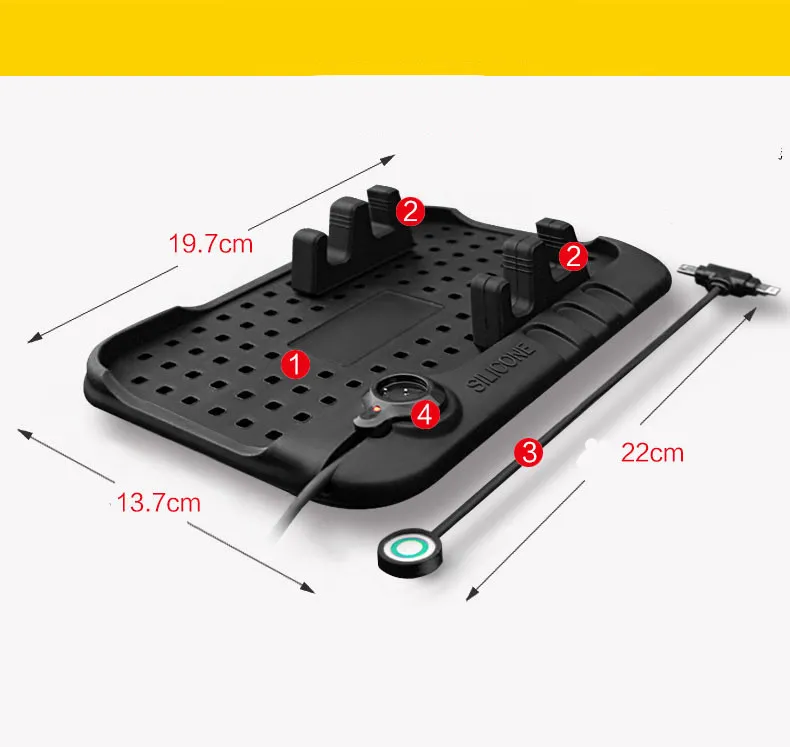 Silicone charging pad bracket for heavy-duty vehicle console, screwless design, easy to install and use.
