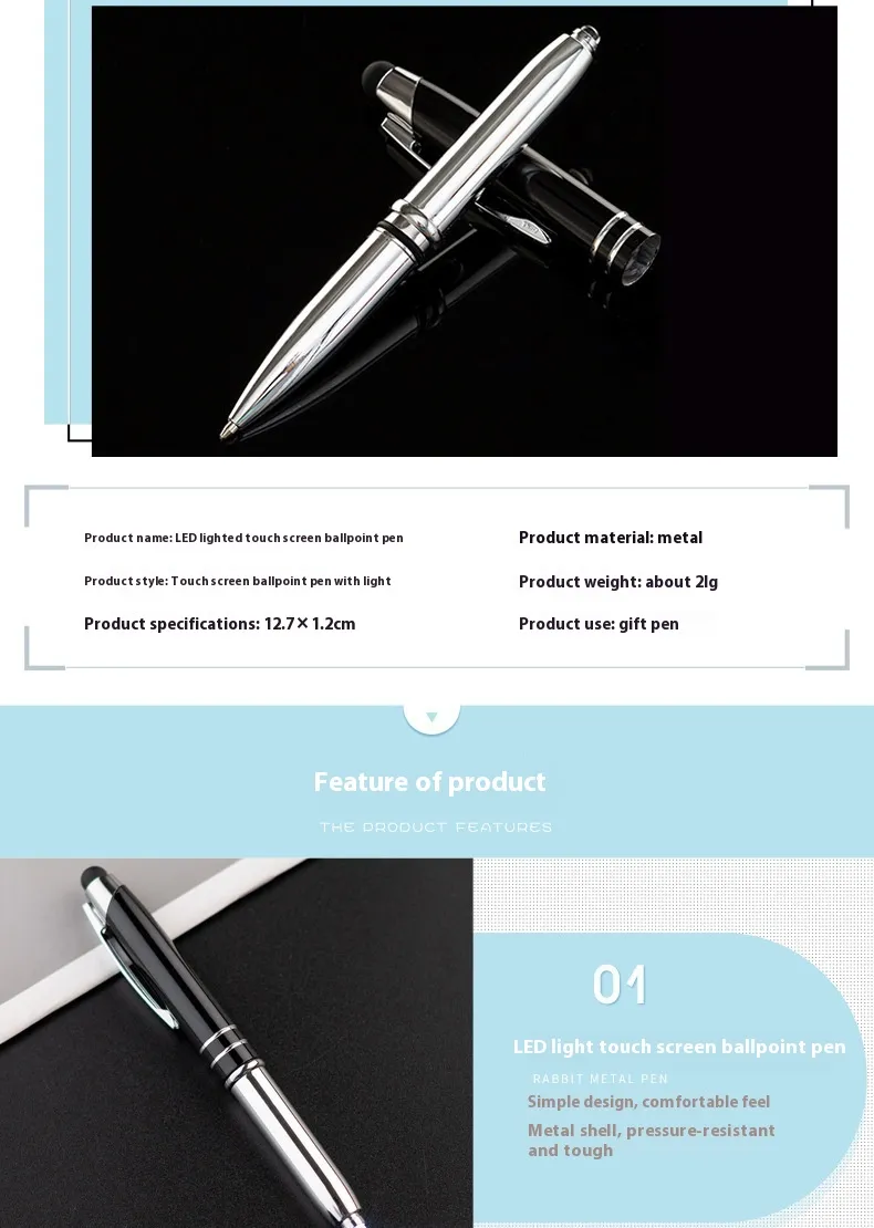 Enhance your daily productivity and creativity with the Multifunctional Metal Touch Screen Capacitive Stylus LED Light Office Ballpoint Pen today!