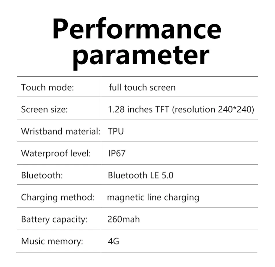 6. Standby time: 7-10 days for BLE connection, 3-5 days for dual Bluetooth status, 5 hours for continuous call or music playback