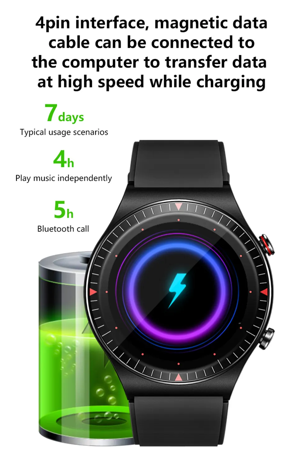 Despite its feature-packed design, this smartwatch offers impressive battery life, allowing you to use it throughout the day without frequent recharging. Enjoy continuous music recording, calls, and notifications with minimal downtime.