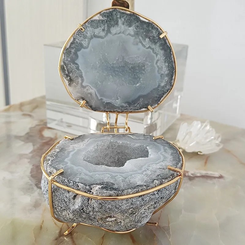 Applications of the Natural Crystal Agate Geode Cornucopia Jewelry Box Ornament