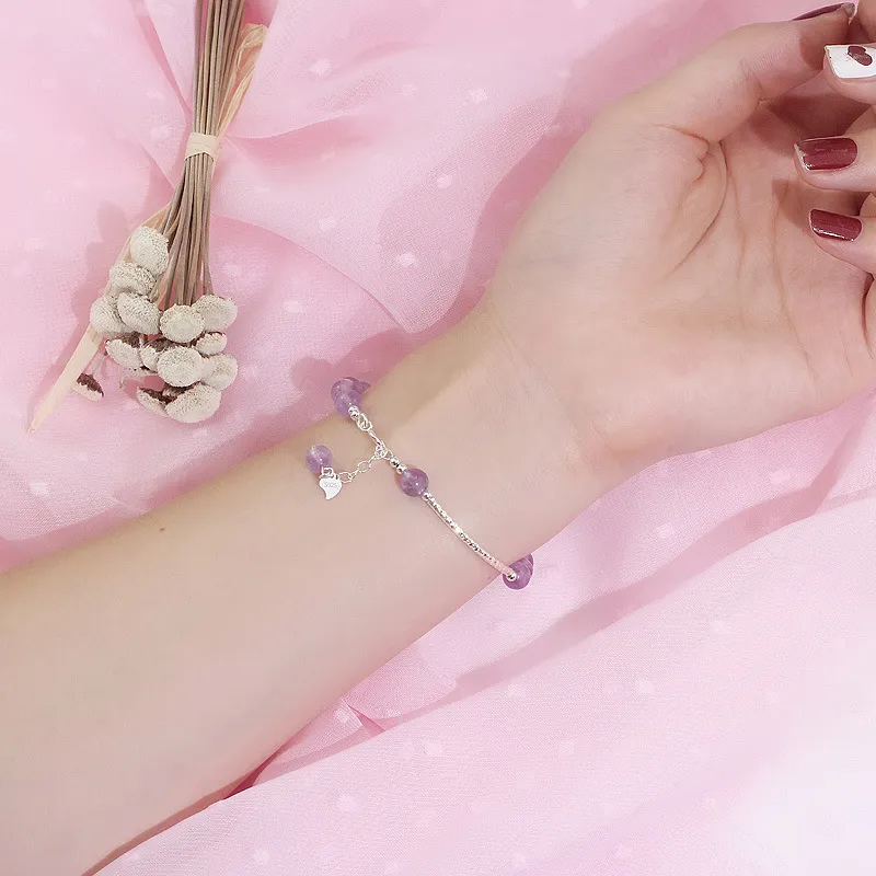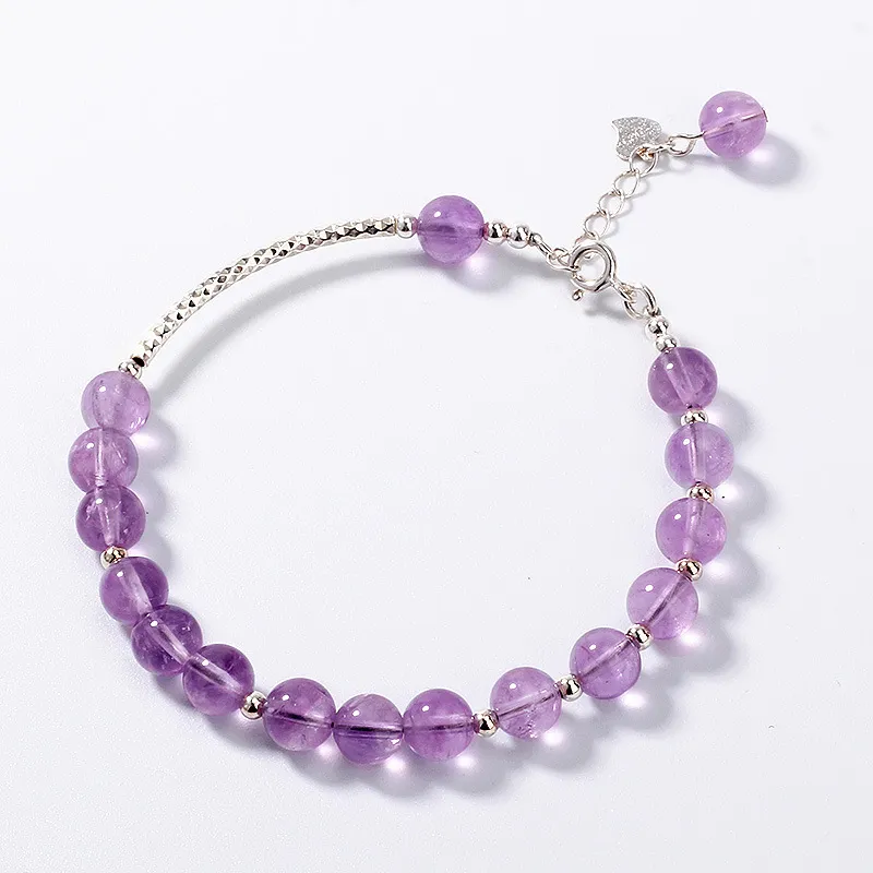 Amethyst is believed to possess powerful healing properties, making it a popular choice for those seeking spiritual balance and emotional healing. Known for its calming and soothing energy, lavender amethyst is often associated with stress relief, relaxation, and enhancing mental clarity. Wearing this bracelet allows you to carry these positive energy benefits with you throughout the day, making it a meaningful accessory not only for its beauty but also for its potential to promote inner peace and well-being.