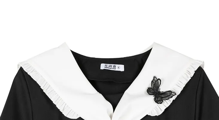 The standout feature of the Navy Sailor Dress is the iconic sailor collar, which adds a touch of vintage nautical charm. The contrasting white piping and bold design make the collar a statement piece, giving the dress its classic and distinctive look. This traditional design element evokes the nautical uniforms of the early 1900s, offering a timeless and elegant style.