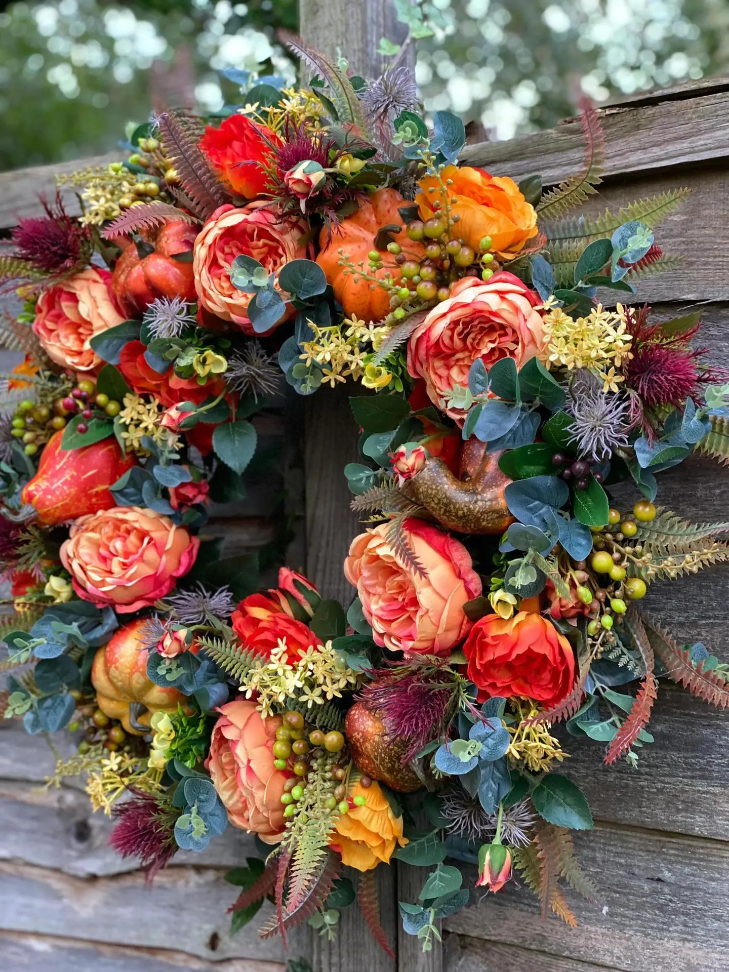 New Autumn Peony Halloween Pumpkin Wreath Home Decor