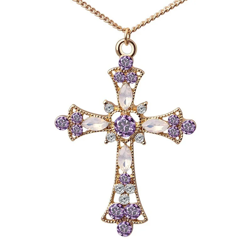 New Believe In God Cross Pendant (Golden purple diamond set)