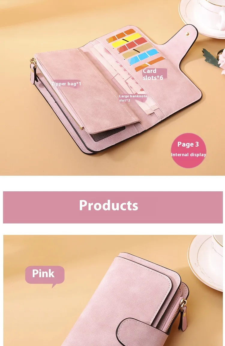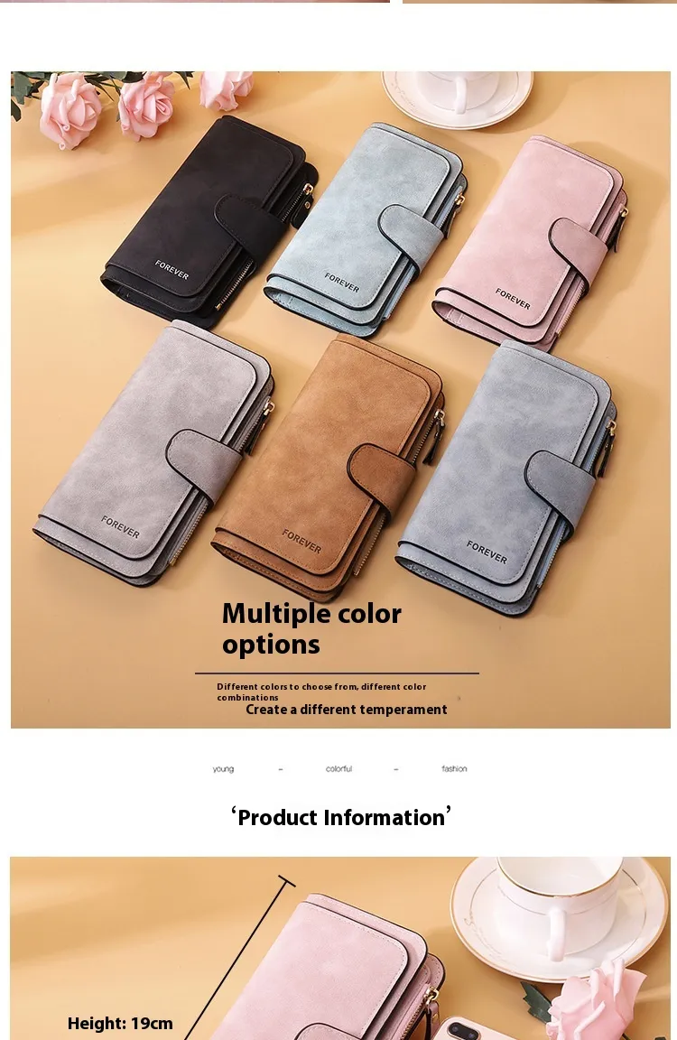 In conclusion, the New Buckle Women's Long Wallet Three Fold Fashion Women's Bag Multi-card Women's Purse Frosted Two-tone Fabric is a must-have accessory for the modern woman. With its stylish buckle closure, durable frosted two-tone fabric, and spacious interior, it combines elegance and practicality to keep all your essentials organized. This wallet is the perfect choice for any woman who appreciates style, functionality, and lasting quality.