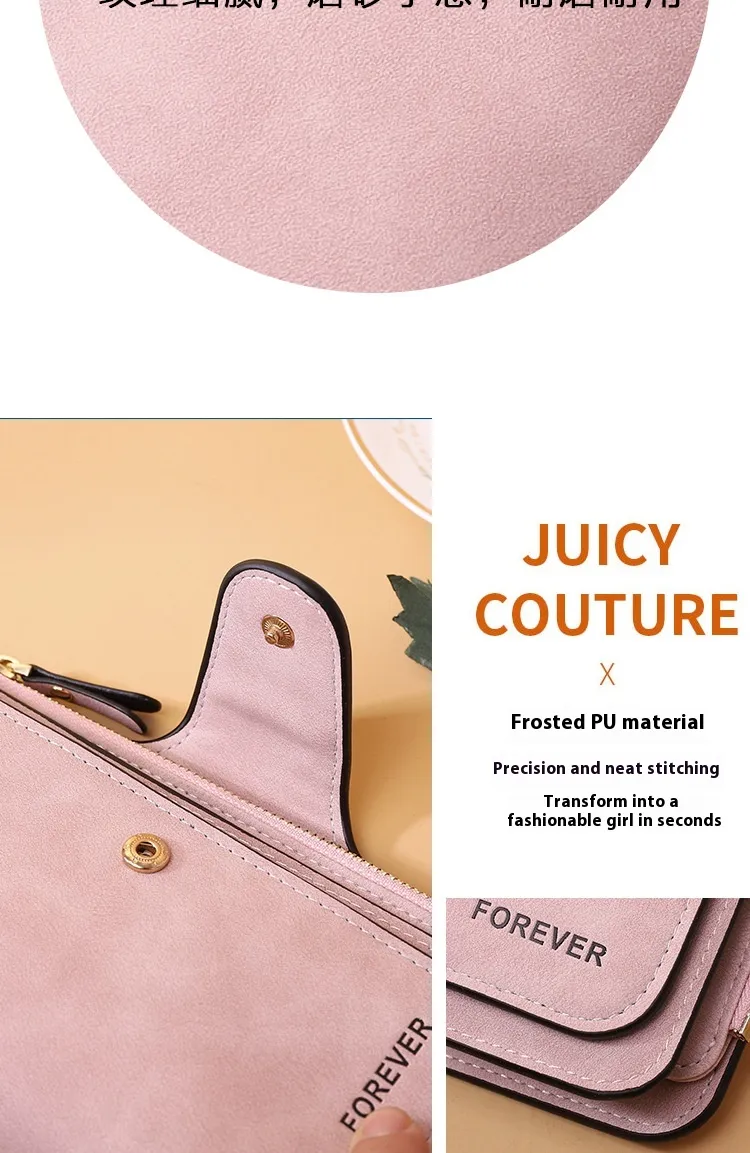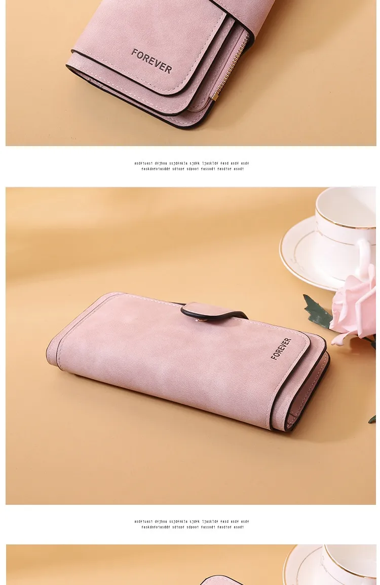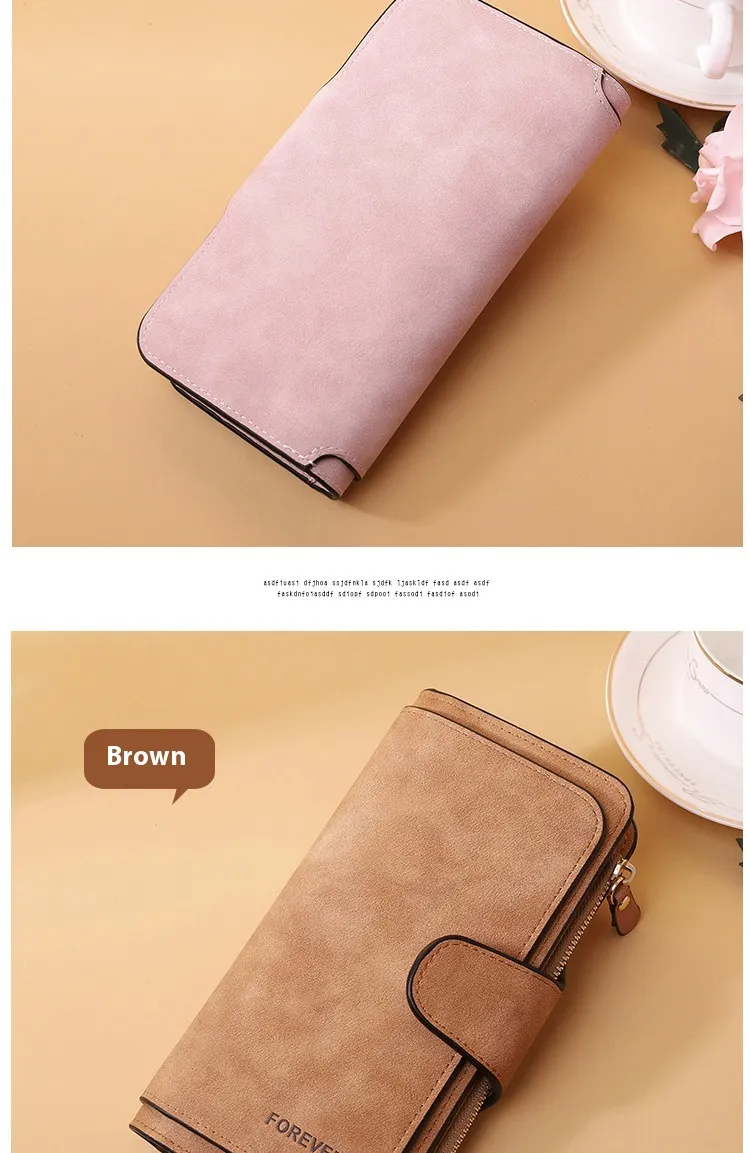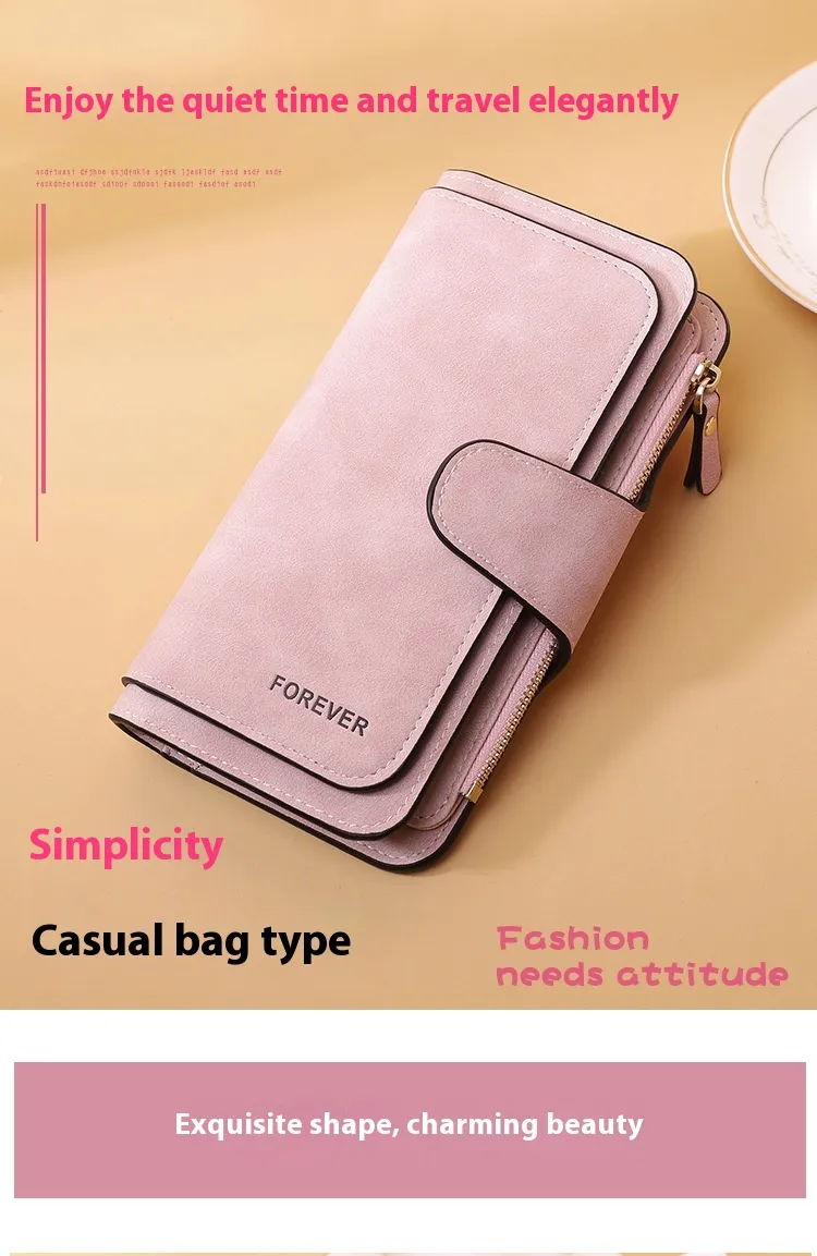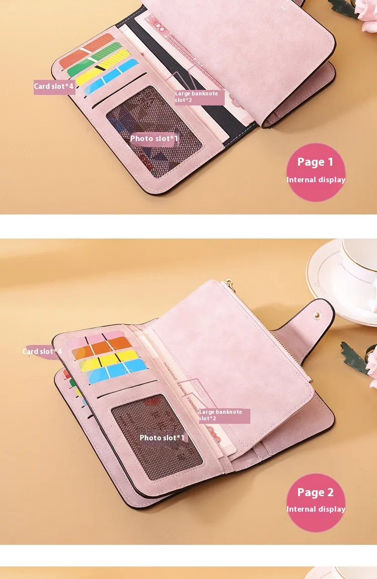 The New Buckle Women's Long Wallet Three Fold Fashion Women's Bag Multi-card Women's Purse Frosted Two-tone Fabric combines elegance, functionality, and practicality in one stylish accessory. Designed for the modern woman, this wallet is made with high-quality frosted two-tone fabric, offering a sophisticated yet durable finish. The three-fold design allows for ample space, providing a perfect solution to store multiple cards, cash, coins, and other small essentials.