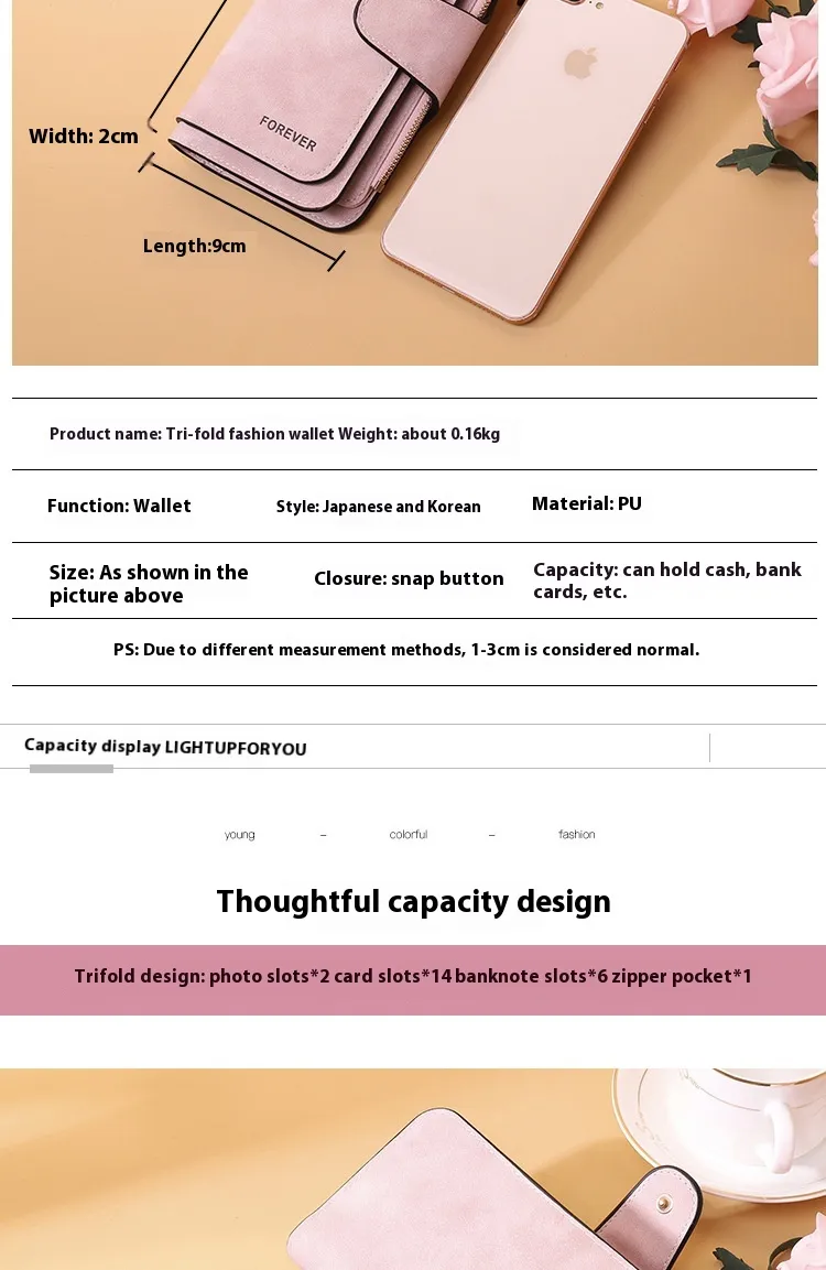 Three-fold Design: Offers a large capacity for organizing your cards, cash, coins, and other small items with ease.
