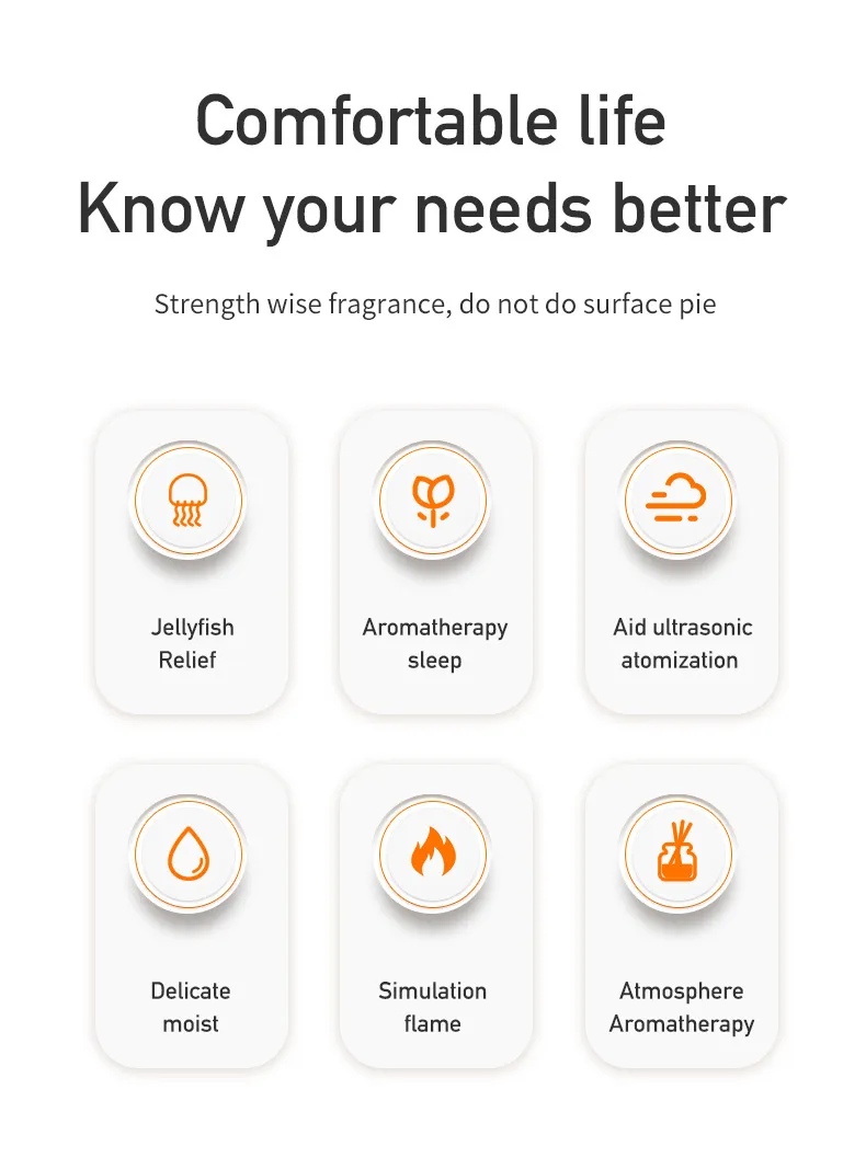 - Enhanced Mood and Relaxation: The calming jellyfish flame effect and soothing aromatherapy help to reduce stress, anxiety, and promote relaxation.