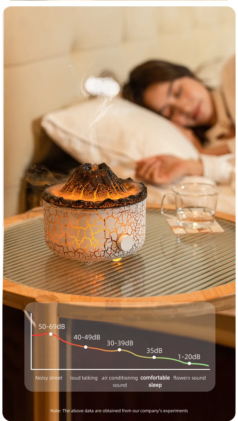 - Designed with a quiet motor, the Volcano Humidifier runs silently, making it perfect for use while sleeping, working, or relaxing. Enjoy clean, humidified air without the disruption of loud noise.