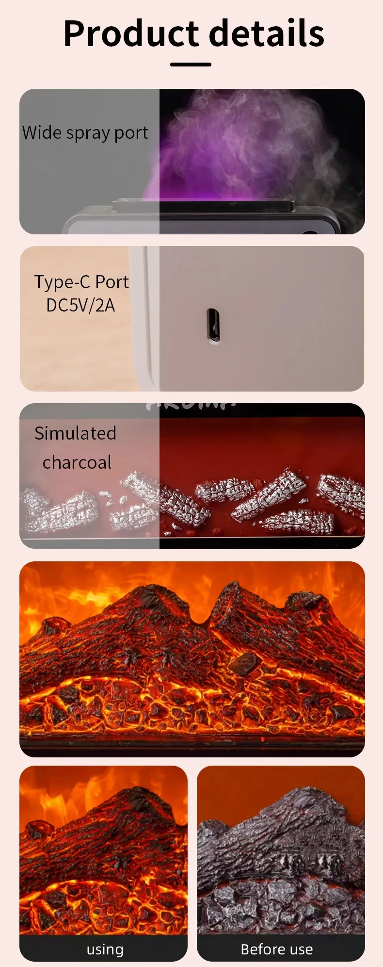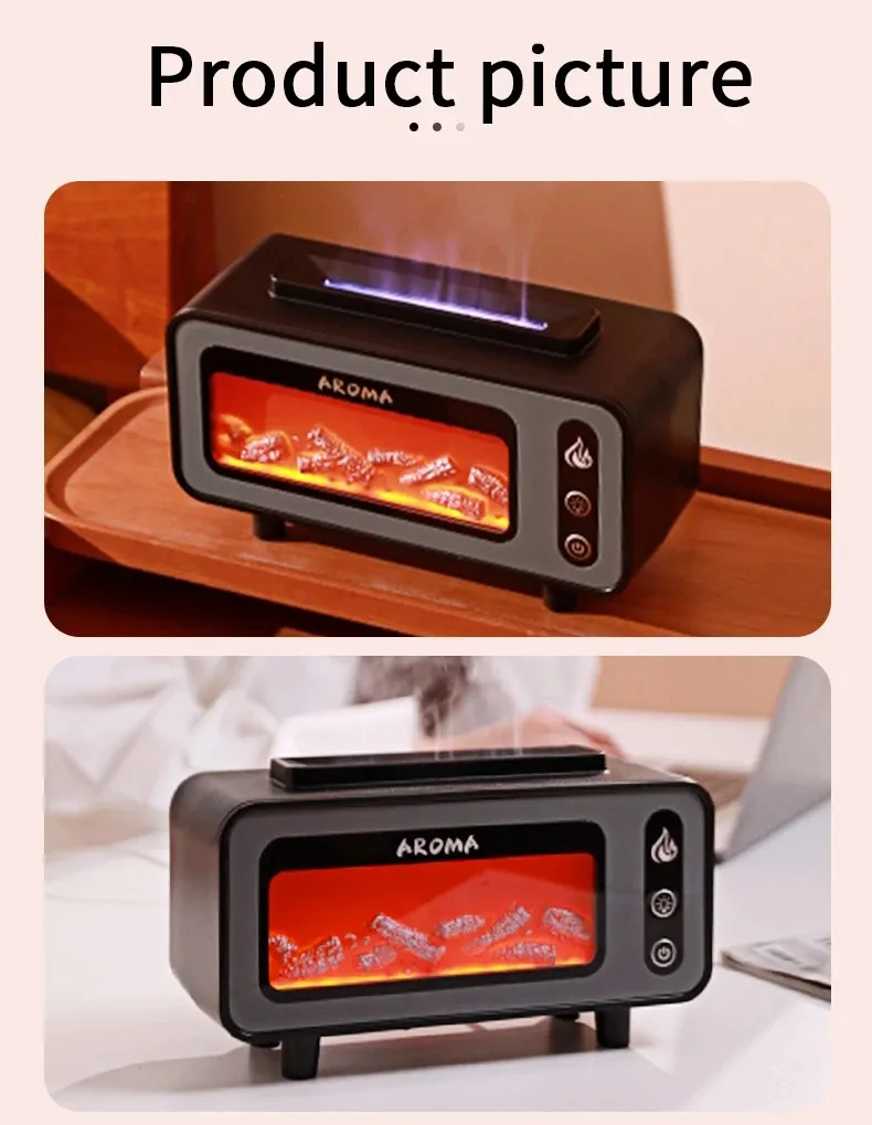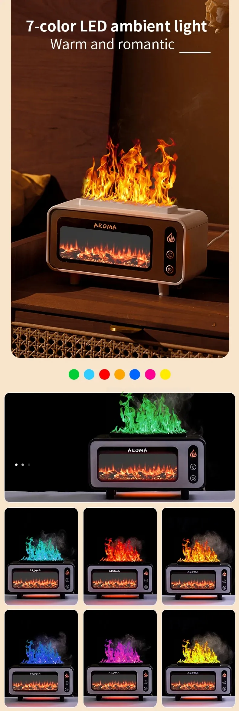 New Design Ultrasonic Flame Humidifier 200ml Simulated Fireplace 3D Fire Aroma Diffuser Colorful Light Essential Oil Diffuser For Bedroom