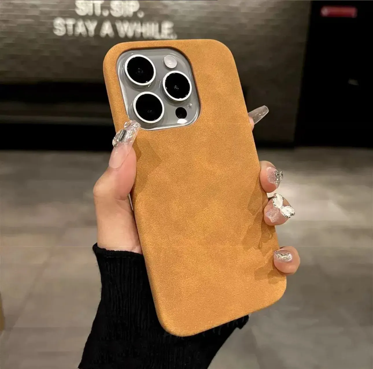 New High-grade Solid Color Suede Phone Case