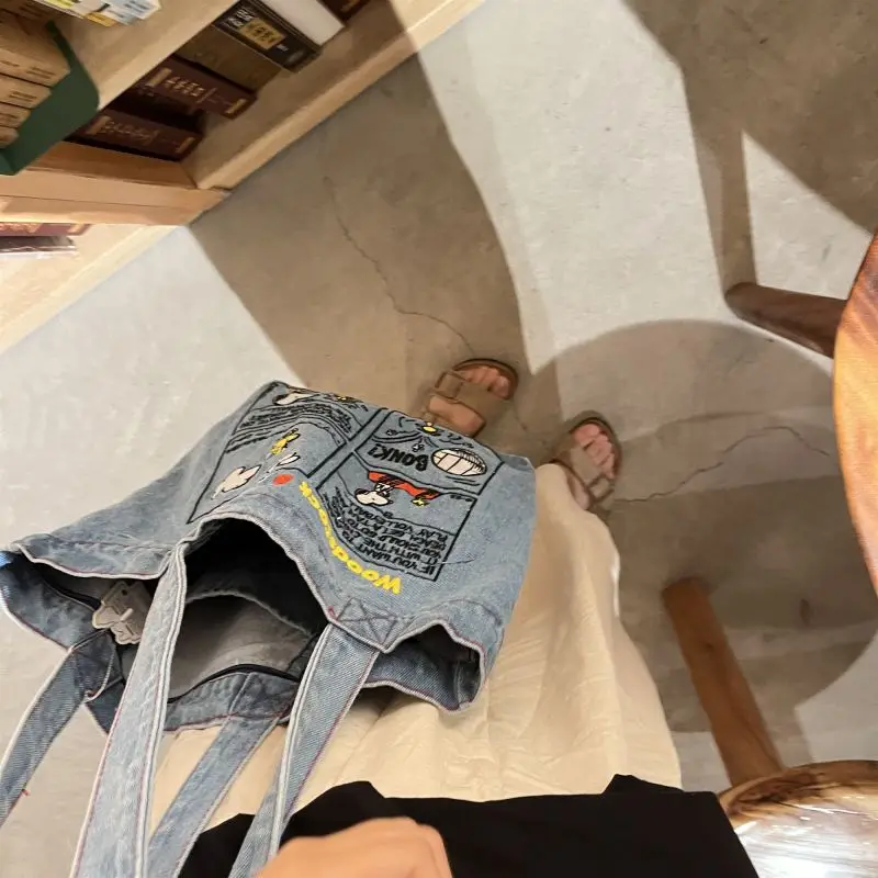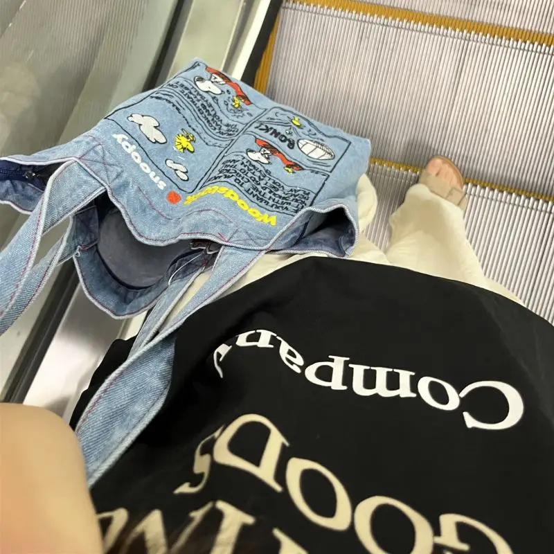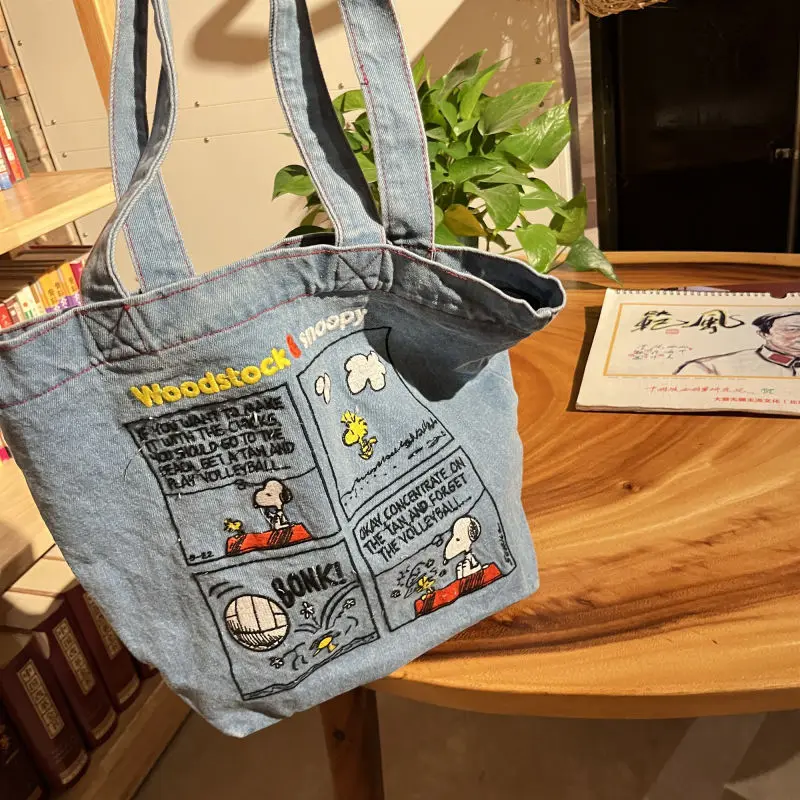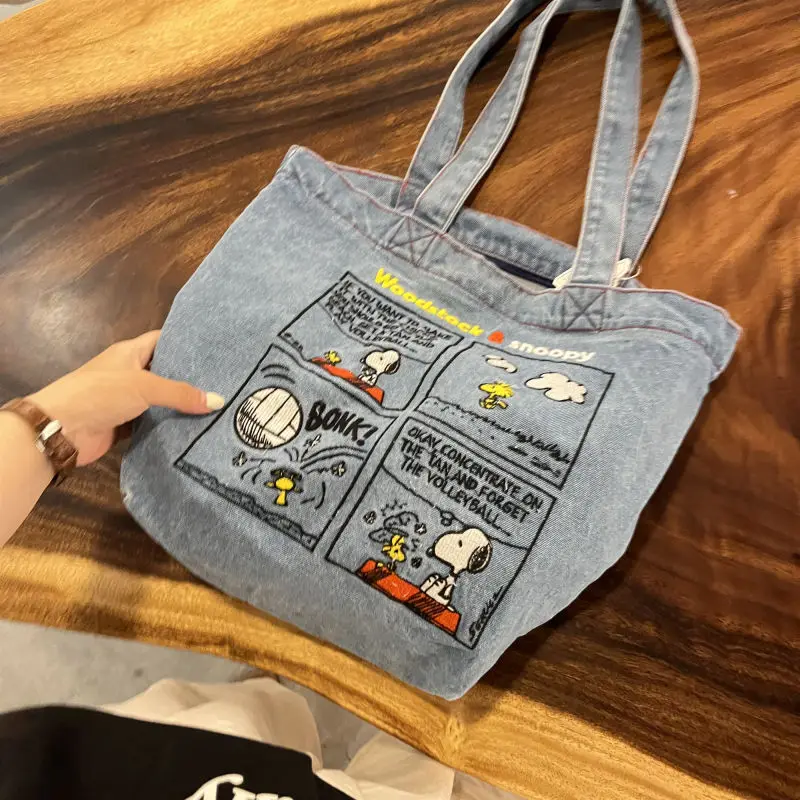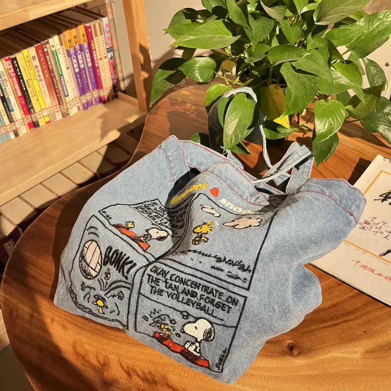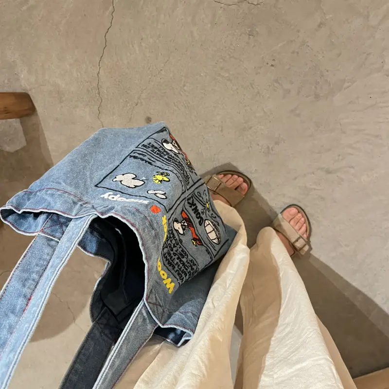New Japanese Cute Embroidered Snoopy Shoulder Bag, Retro All-match Denim Bag, Large Capacity Portable Crossbody Bag