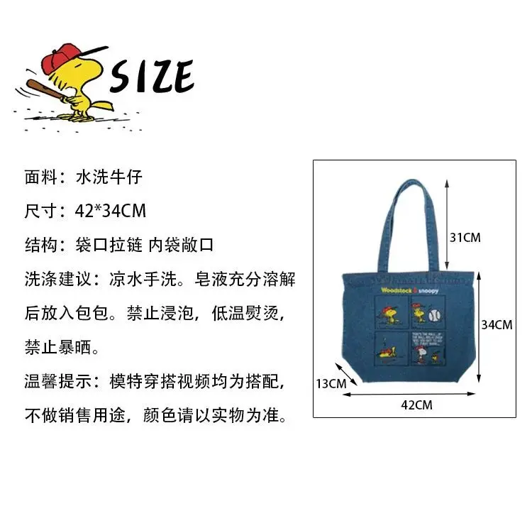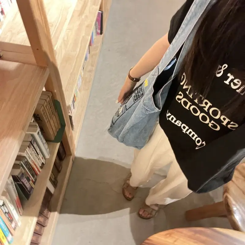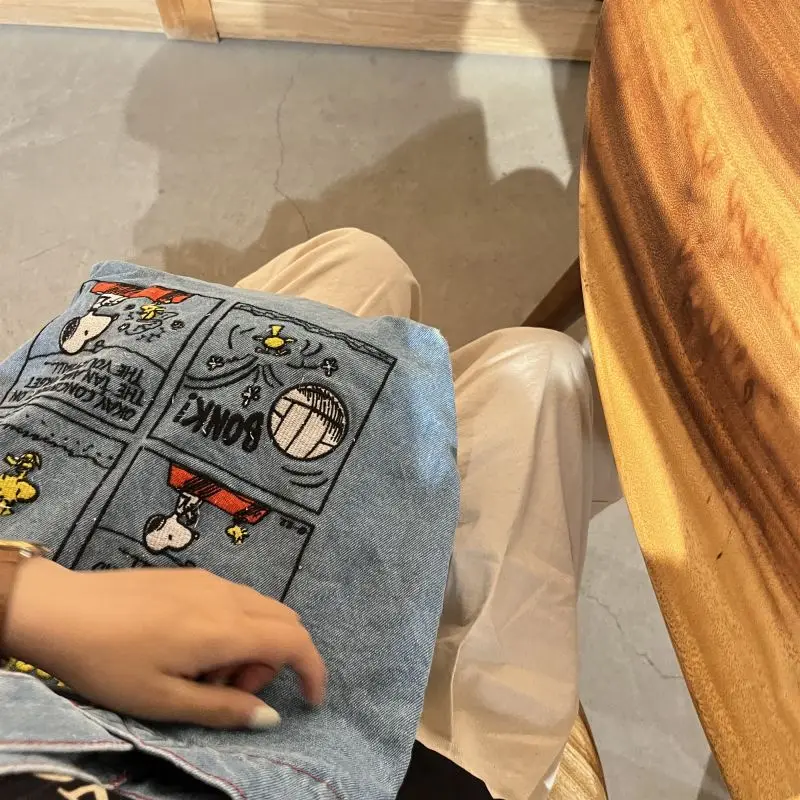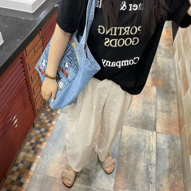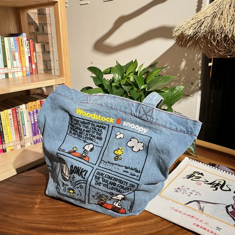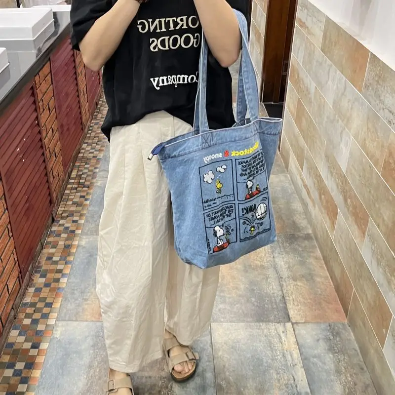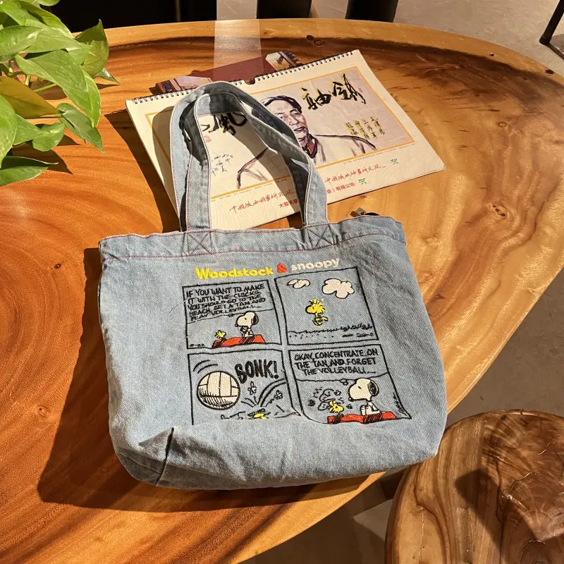 New Japanese Cute Embroidered Snoopy Shoulder Bag, Retro All-match Denim Bag, Large Capacity Portable Crossbody Bag