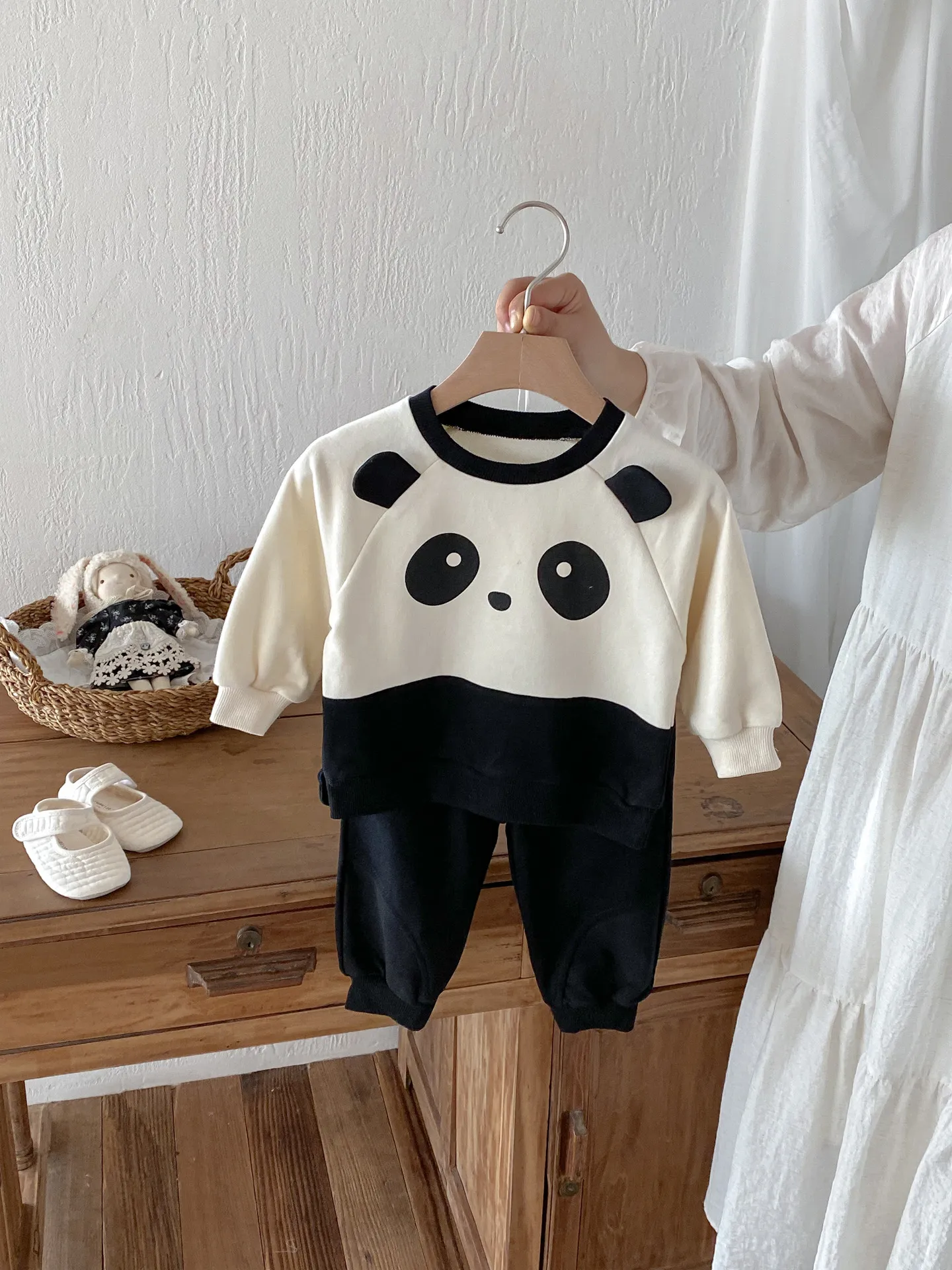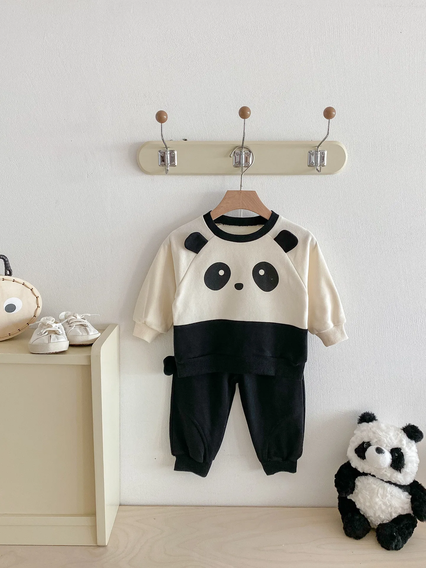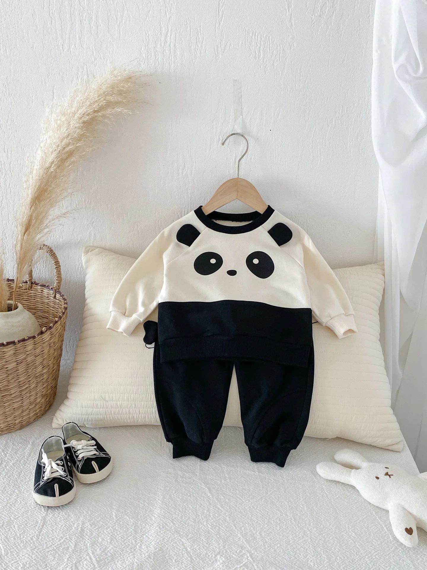 New Long Sleeve Round Neck Western Style Panda Sweater Pants Suit