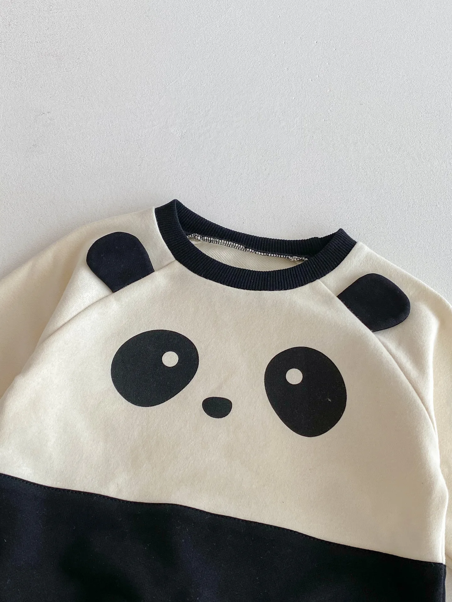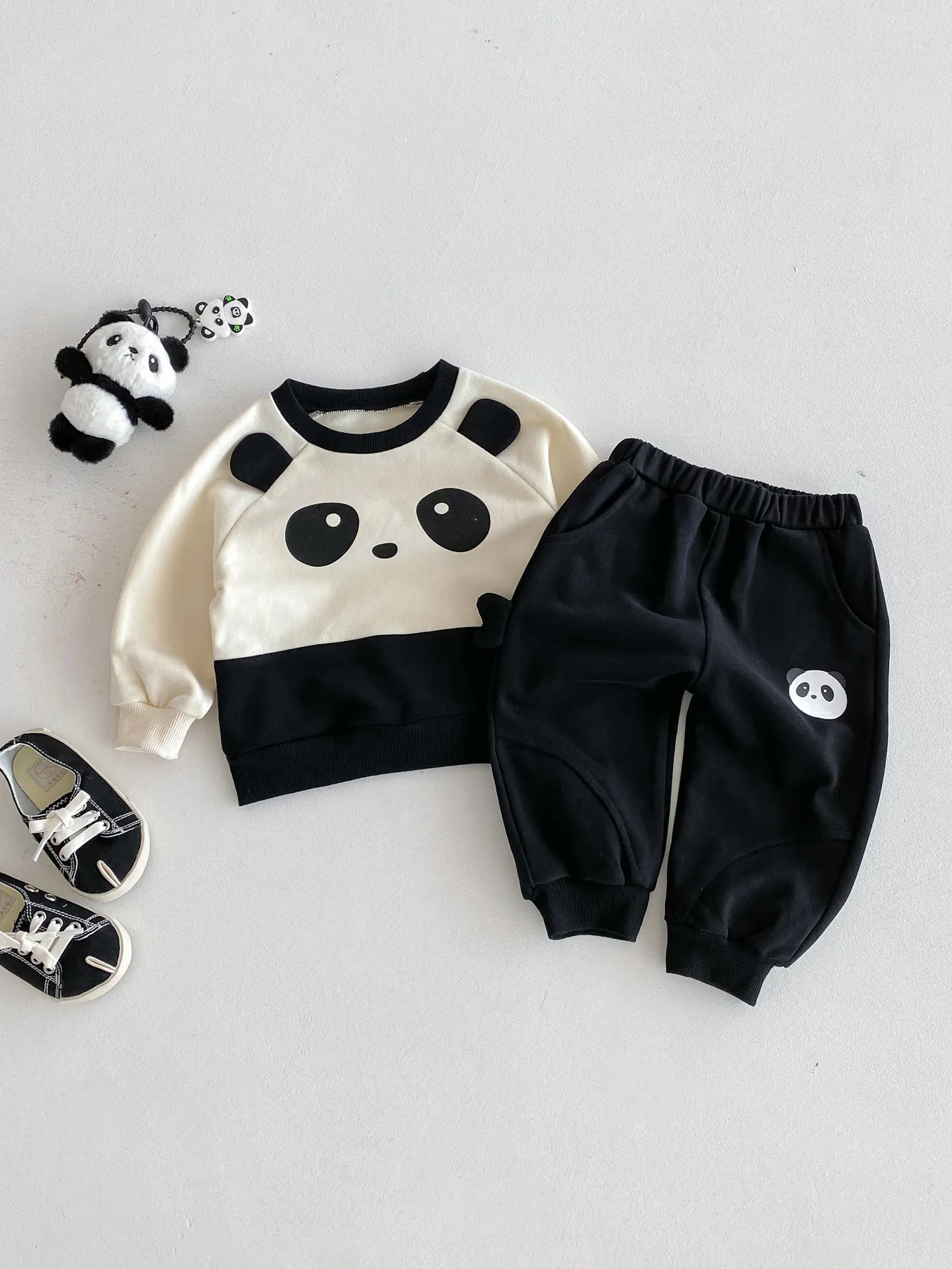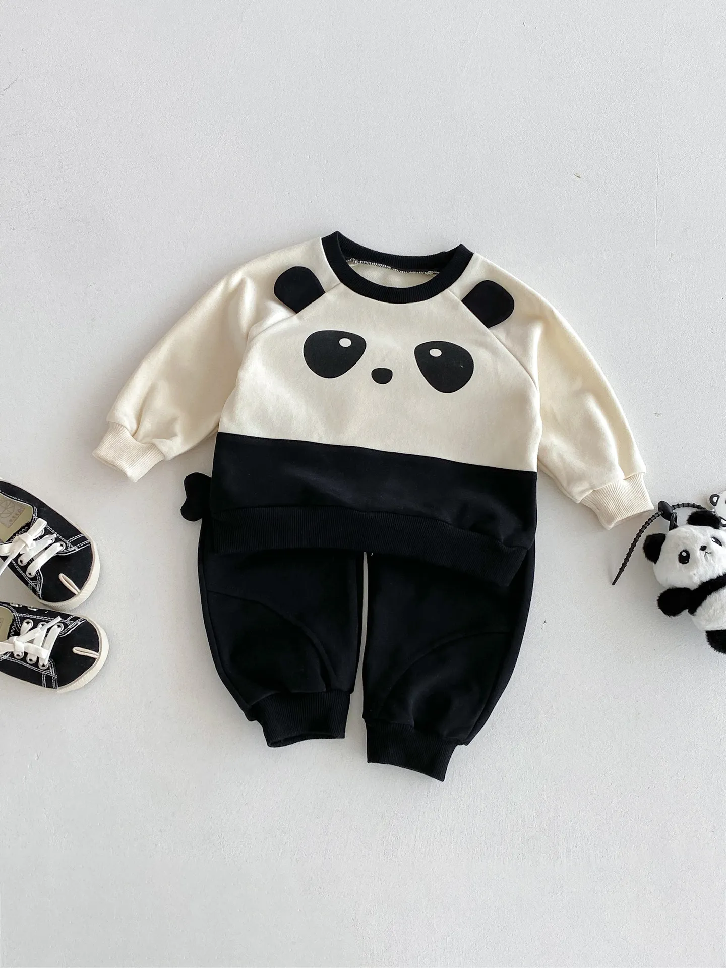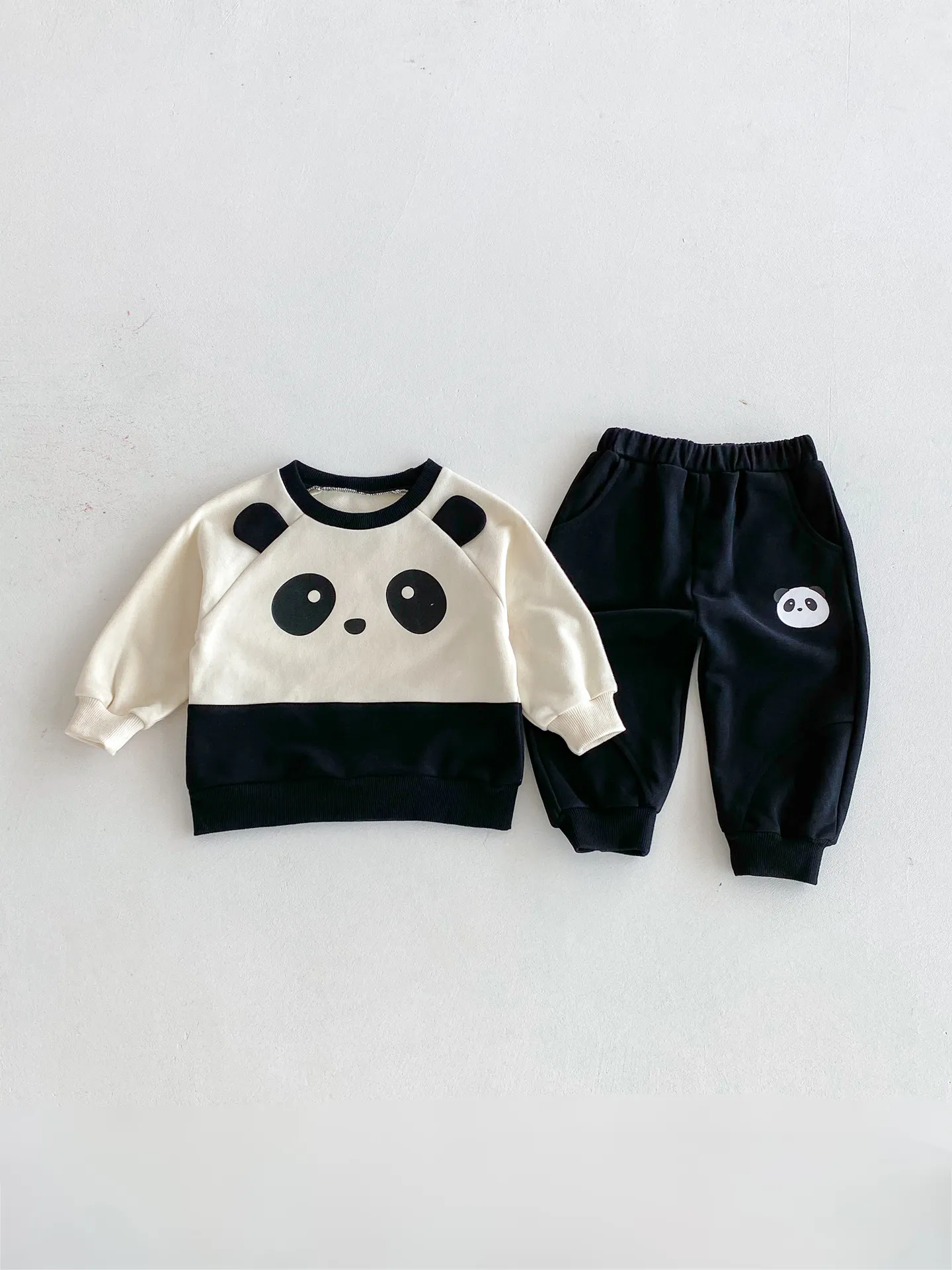 New Long Sleeve Round Neck Western Style Panda Sweater Pants Suit