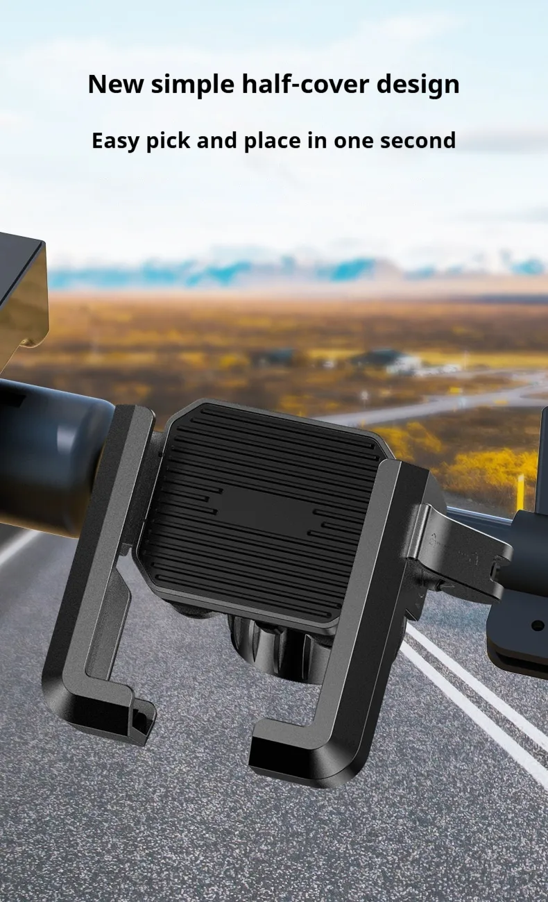 Crafted with durable, weather-resistant materials, this holder withstands rain, wind, and bumpy terrains while keeping your phone in place. The 360° rotating ball joint lets you adjust the viewing angle freely, so you can check navigation, take calls via Bluetooth, or enjoy your music playlist – all hands-free.