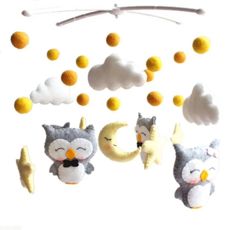 Newborn Owl Hand-Made Fabric Crib Rattle Toy
