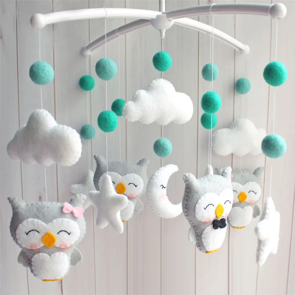 Newborn Owl Hand-Made Fabric Crib Rattle Toy