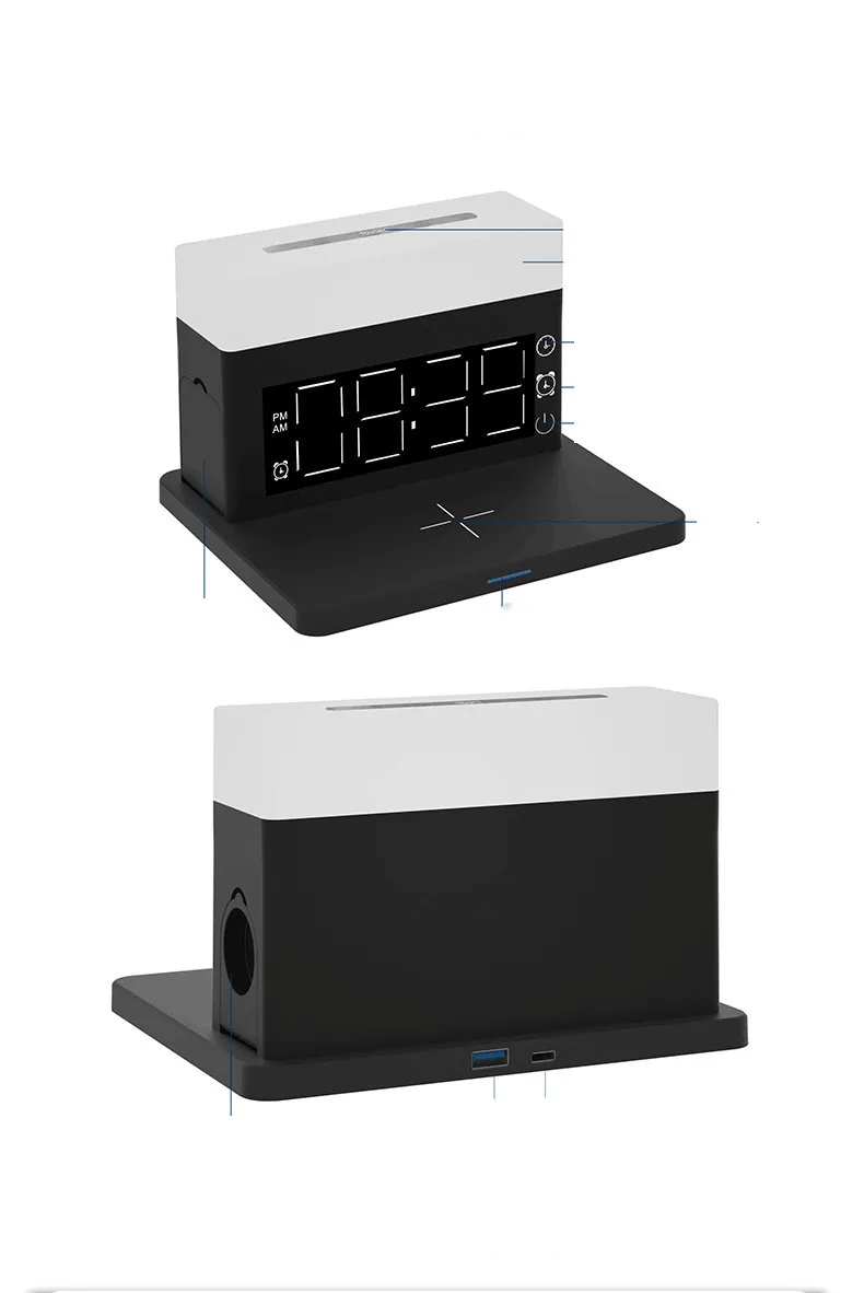 Multiple Charging Options: In addition to wireless charging, the night light clock also comes with USB charging ports,