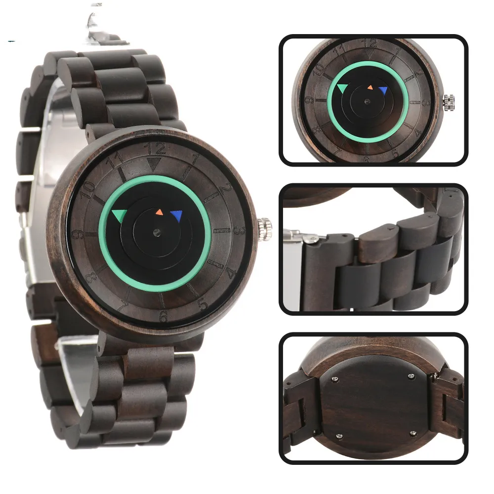 In conclusion, the No Pointer Concept Quartz Watch is a perfect choice for those who want a unique and stylish timepiece with a modern twist. With its innovative design, wooden case, and reliable quartz movement, this watch combines luxury with sustainability. The minimalist dial, leather strap, and lightweight feel ensure that it’s not only a great accessory but also a comfortable choice for everyday wear. Whether you're dressing up or down, this watch adds a touch of personal style and modern elegance to your look.