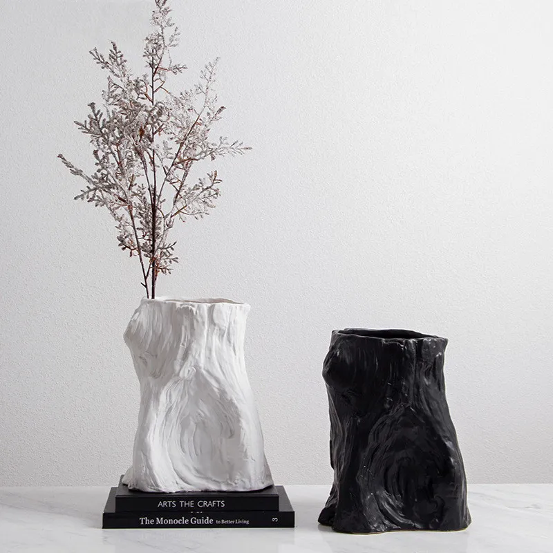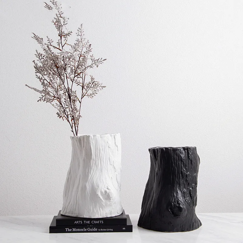 Nordic Simple Black And White Ceramic Creative Stump Vase Fashion Home Villa Model Room Soft Decoration Handicraft Flower