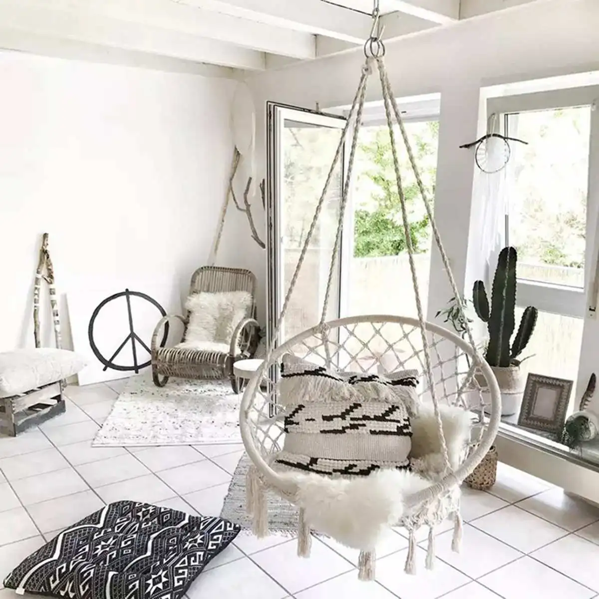 Nordic Style Round Hammock Outdoor Indoor Dormitory Bedroom Hanging Chair For Child Adult Swinging Single Safety Hammock